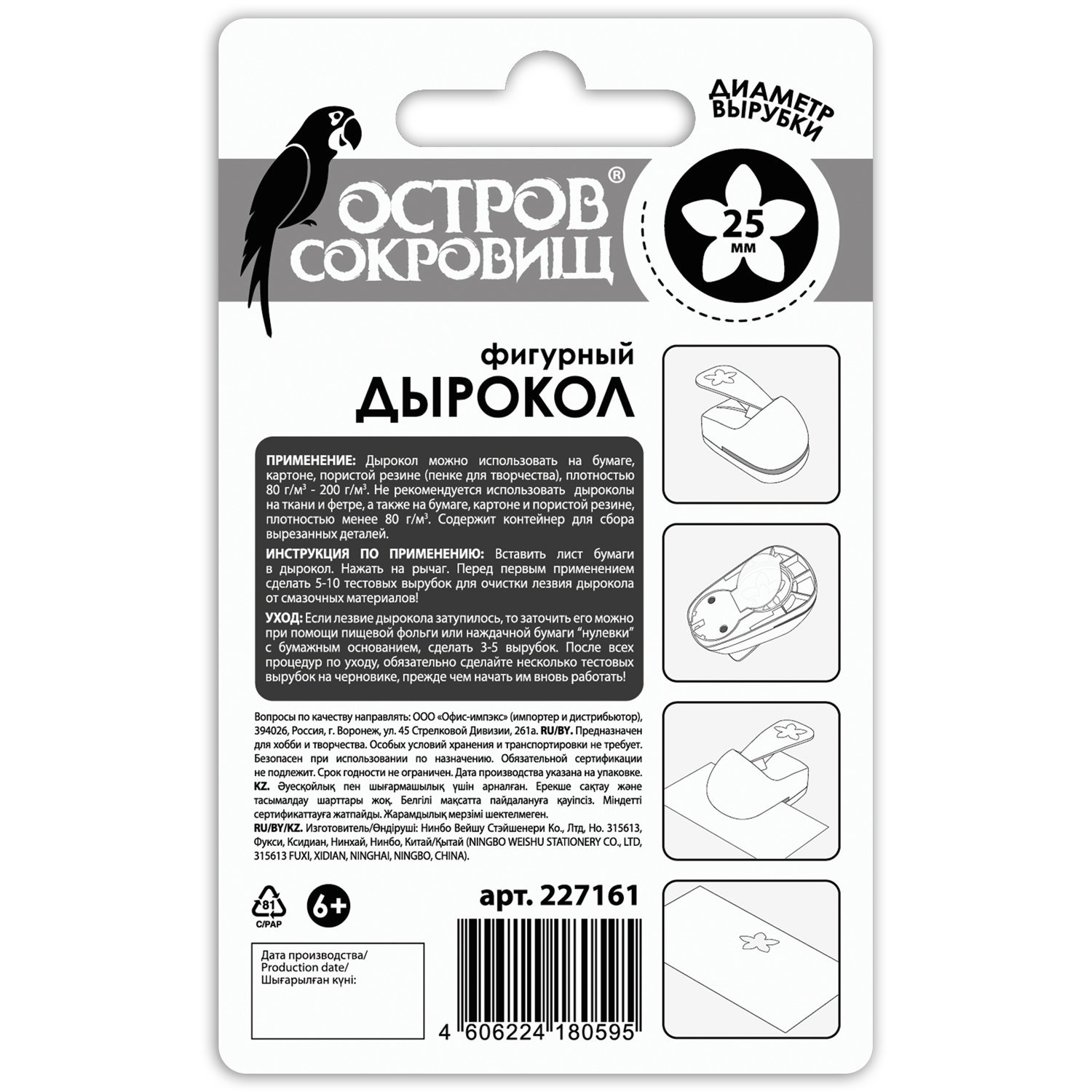 Дырокол фигурный "Цветок", диаметр вырезной фигуры 25 мм, ОСТРОВ СОКРОВИЩ, 227161
