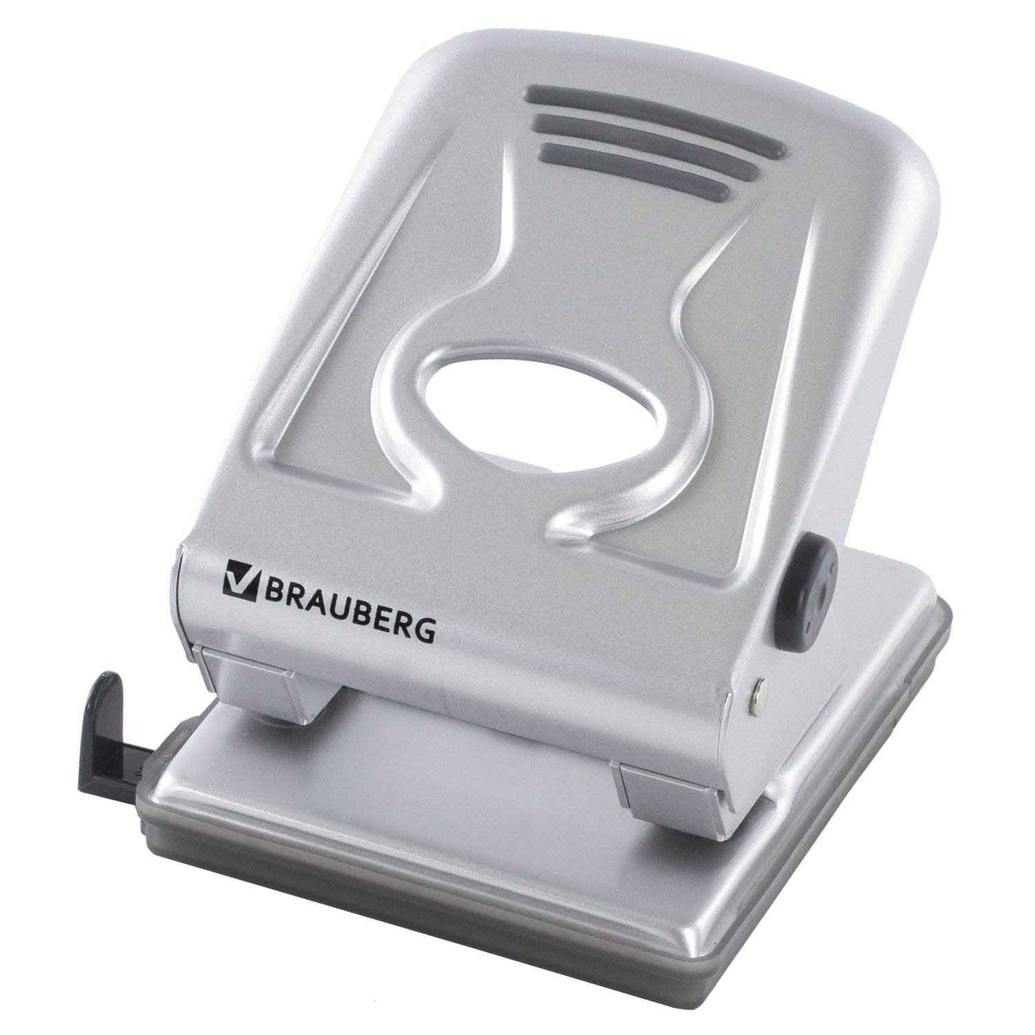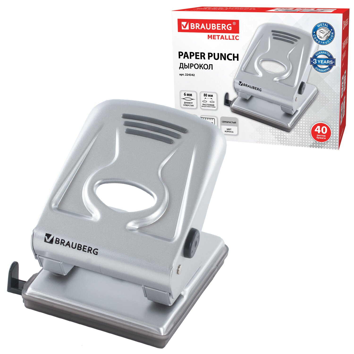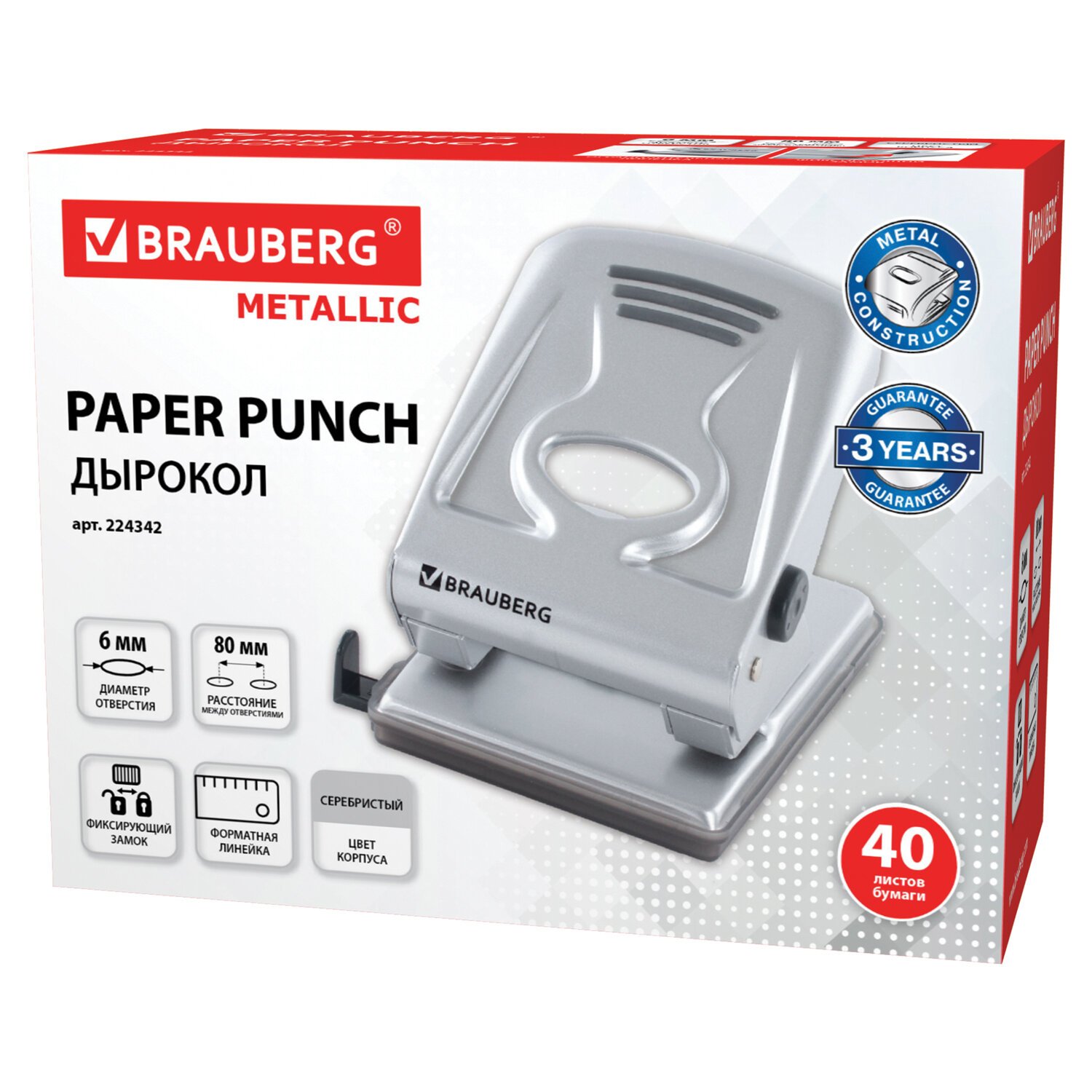 Дырокол металлический BRAUBERG "Metallic", до 40 листов, серебристый, 224342