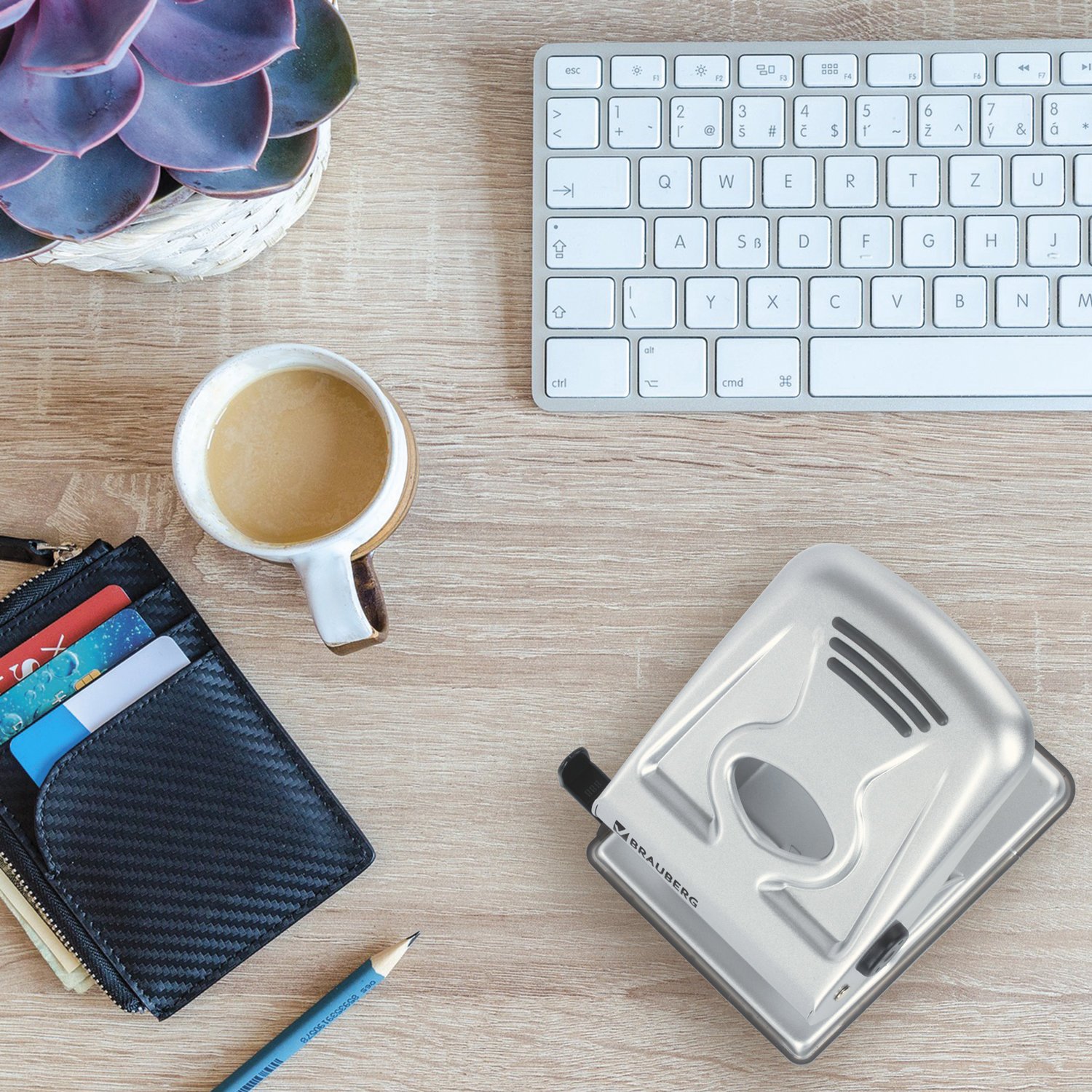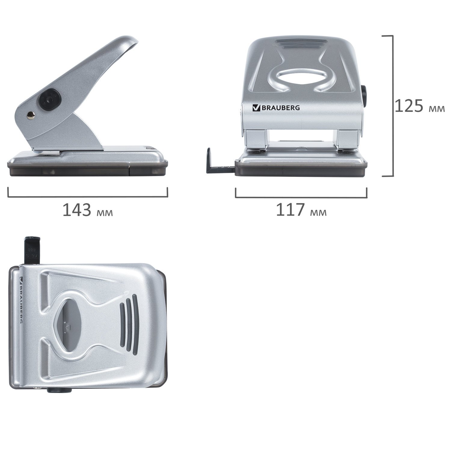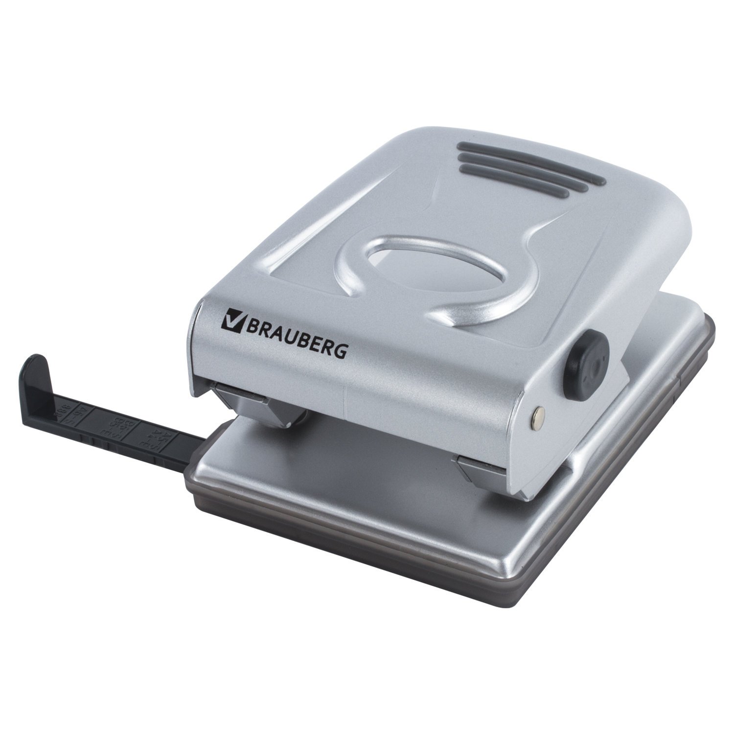 Дырокол металлический BRAUBERG "Metallic", до 40 листов, серебристый, 224342