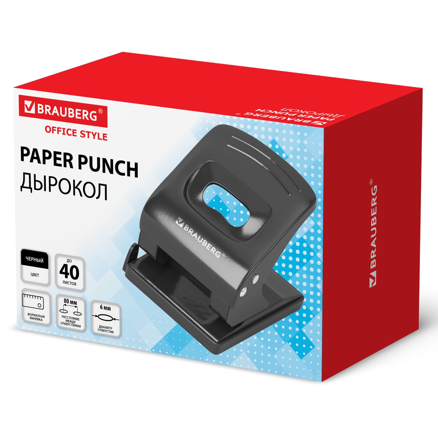 Дырокол BRAUBERG "SX-40", до 40 листов, черный, 229695