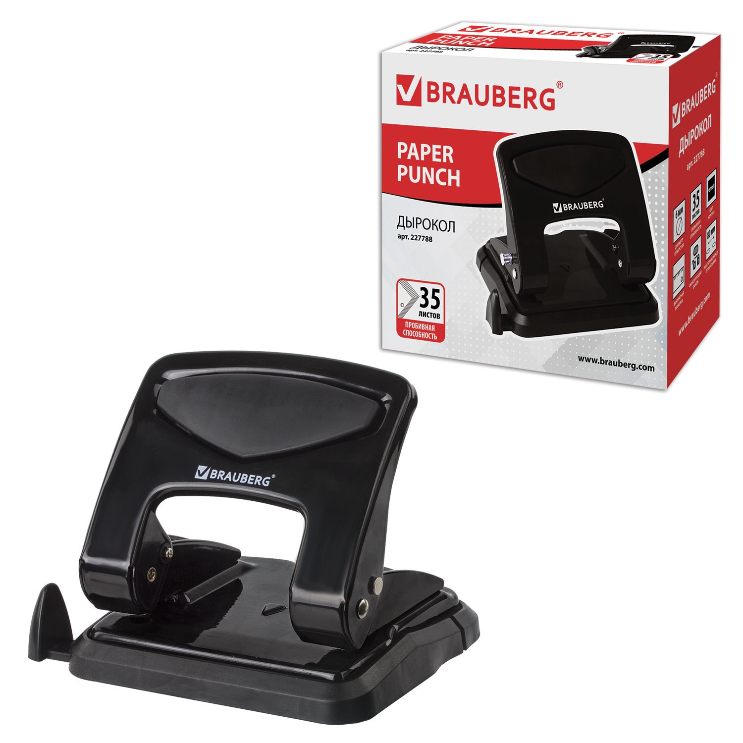 Дырокол металлический BRAUBERG "PN-150M", до 35 листов, черный, 227788