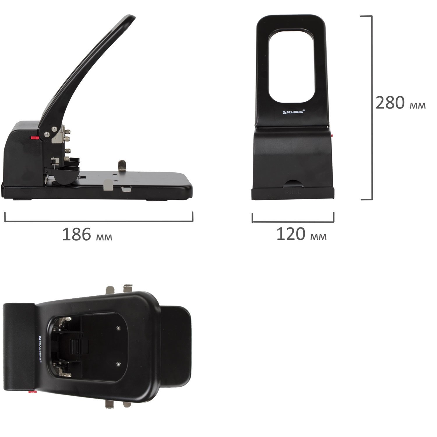Дырокол BRAUBERG "Heavy duty" – это необходимый офисный предмет, с помощью которого можно аккуратно пробивать отверстия в бумаге и затем подшивать документы в папку. Предназначен для перфорации большого объема бумажных листов.