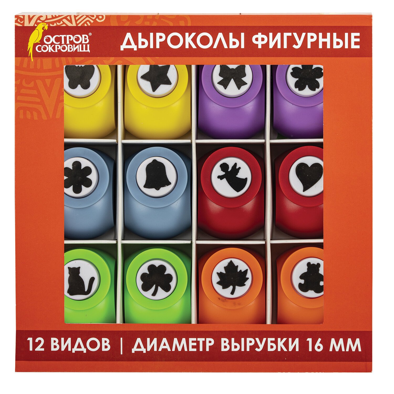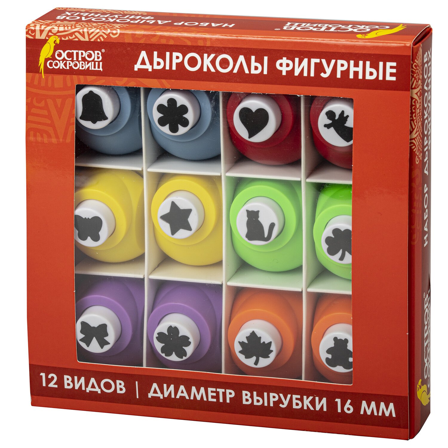 Дыроколы фигурные, НАБОР 12 видов, диаметр вырубки 16 мм, ОСТРОВ СОКРОВИЩ, 665227