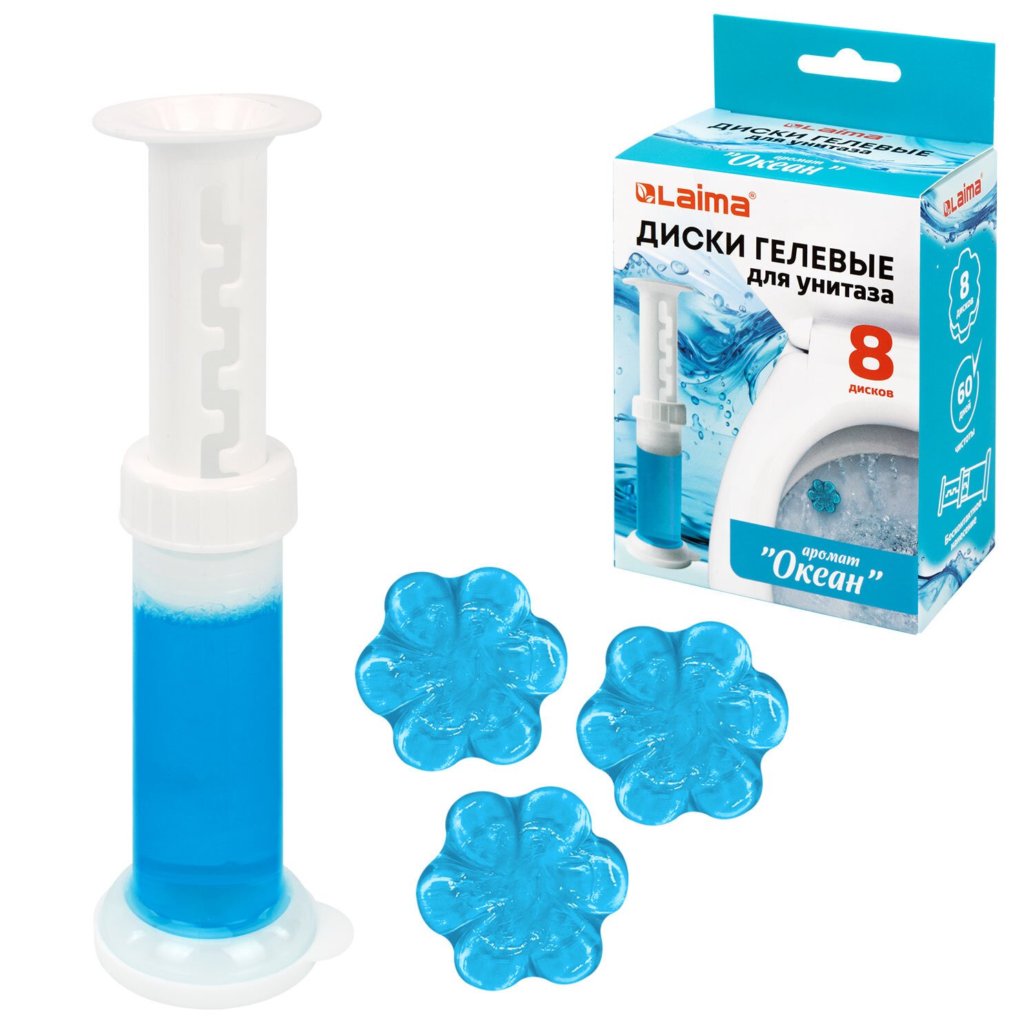 Диски гелевые для унитаза 44г LAIMA "Океан", 8 штук, 609796