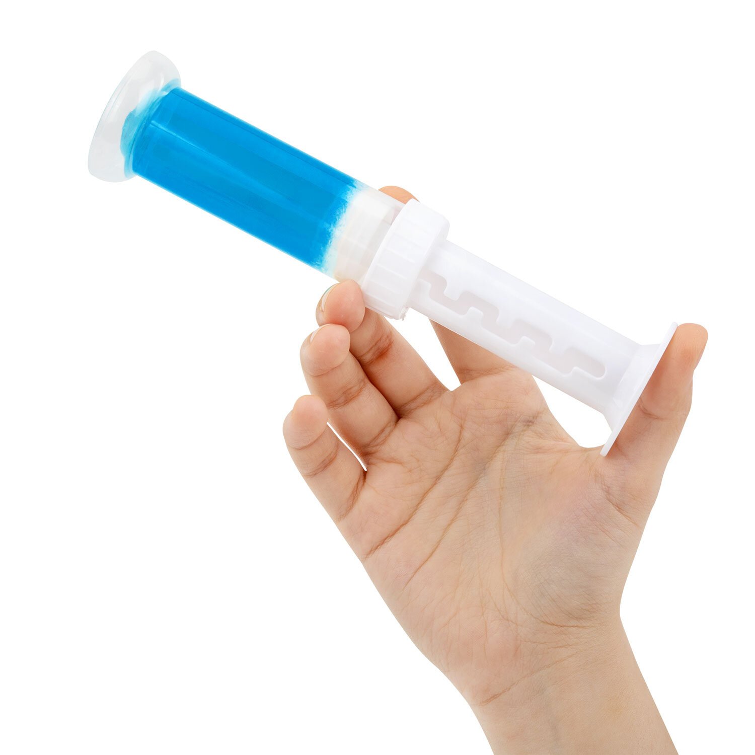 4. Приложите дозатор к внутренней стороне ободка унитаза в месте, где поток воды наиболее интенсивен, и нажмите до щелчка.