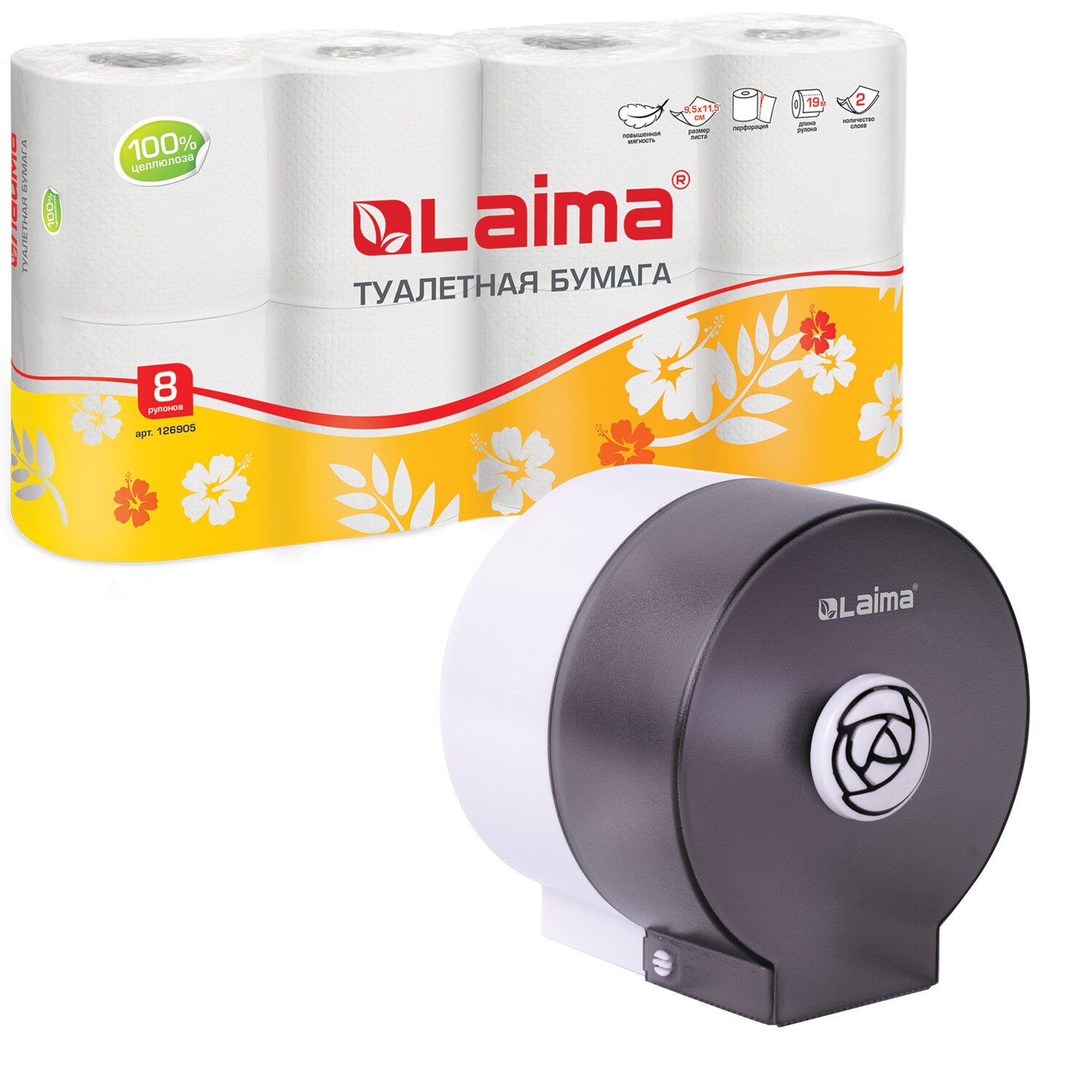 Диспенсер для бытовой туалетной бумаги LAIMA, тонированный серый, 605044