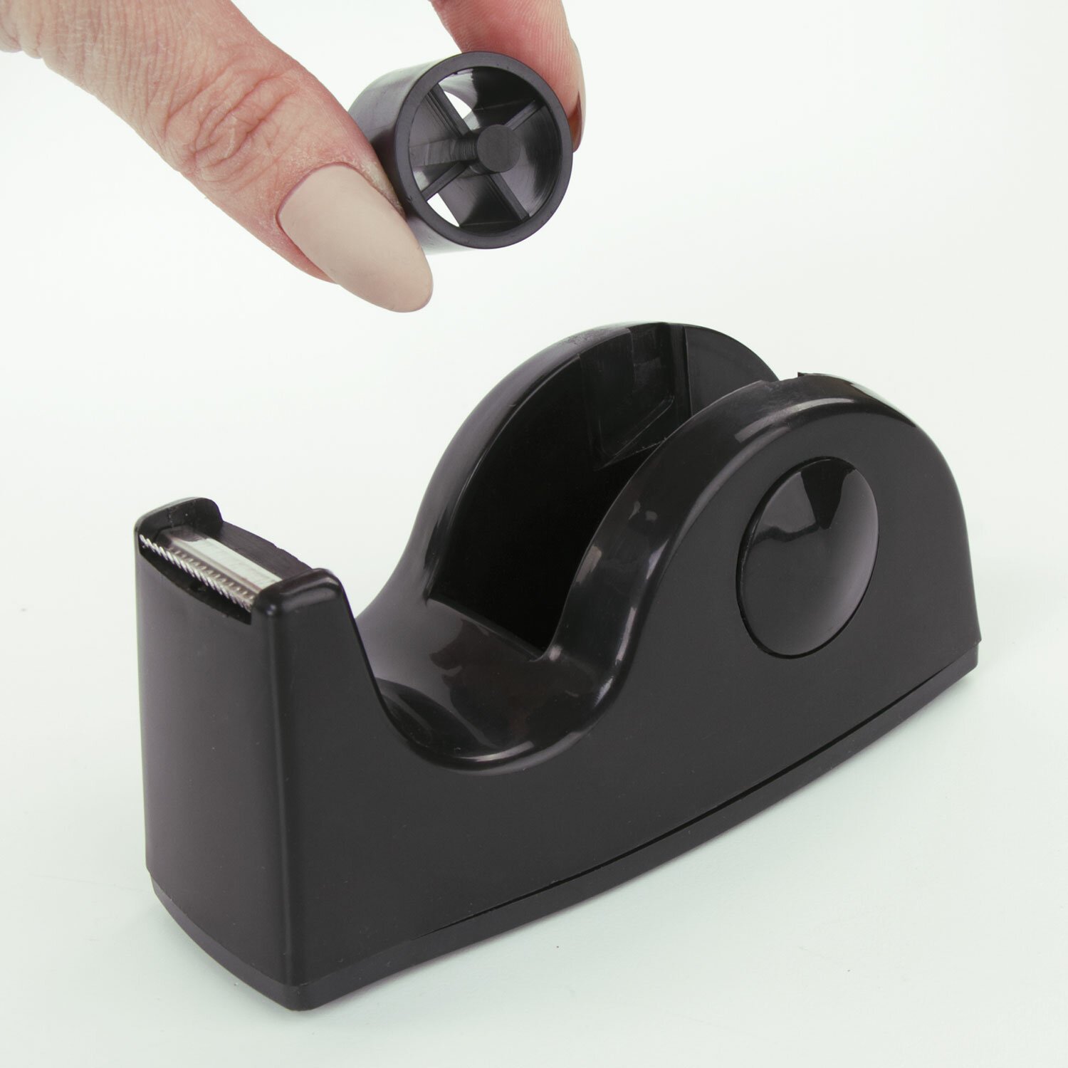 Диспенсер для клейкой ленты BRAUBERG настольный, утяжеленный, средний, черный, 11,8х5х5 см, 440142