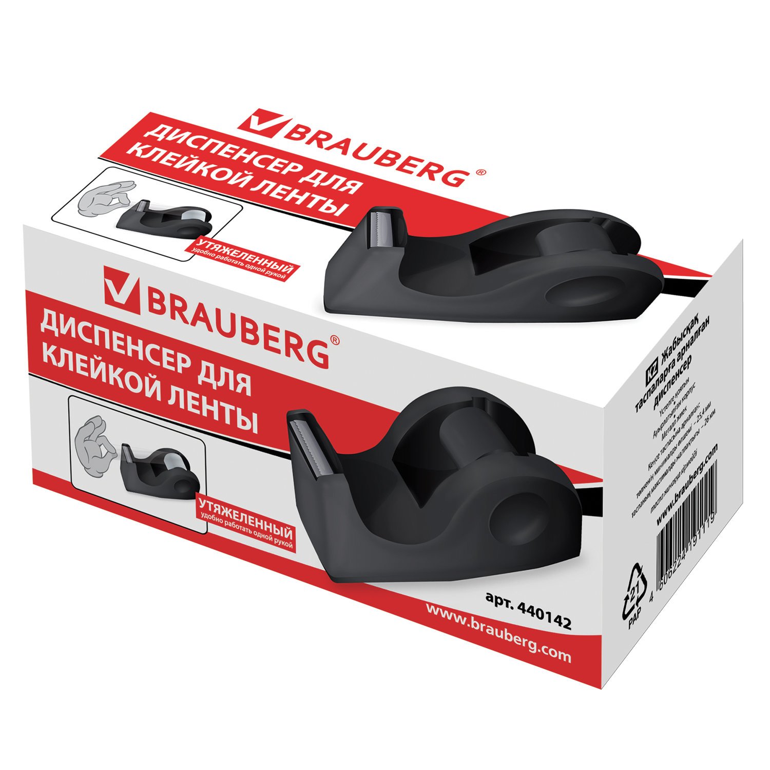 Диспенсер для клейкой ленты BRAUBERG настольный, утяжеленный, средний, 440014