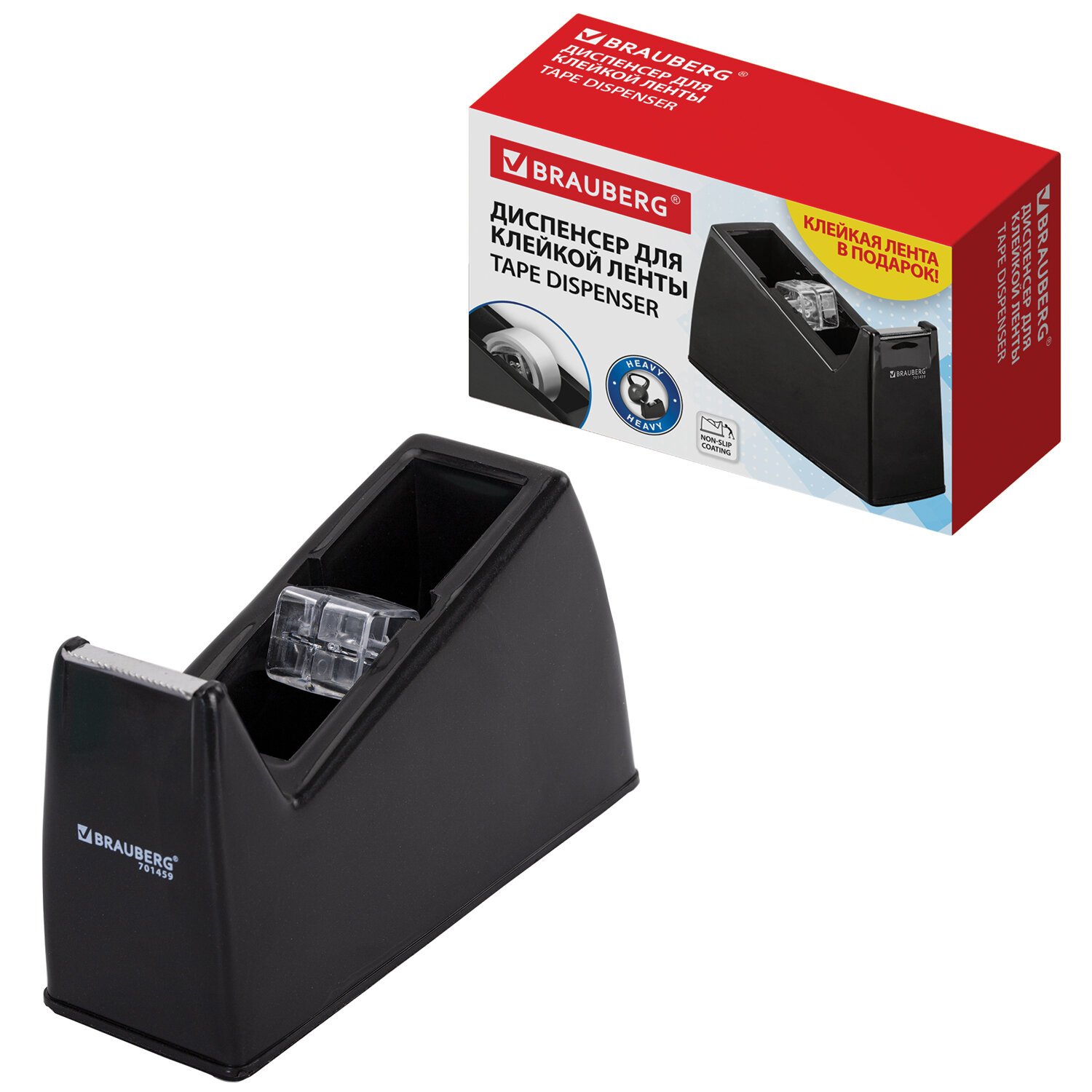 Диспенсер для клейкой ленты ЧЕРНЫЙ (Лента в Подарок!), утяжеленный большой, BRAUBERG, 701459