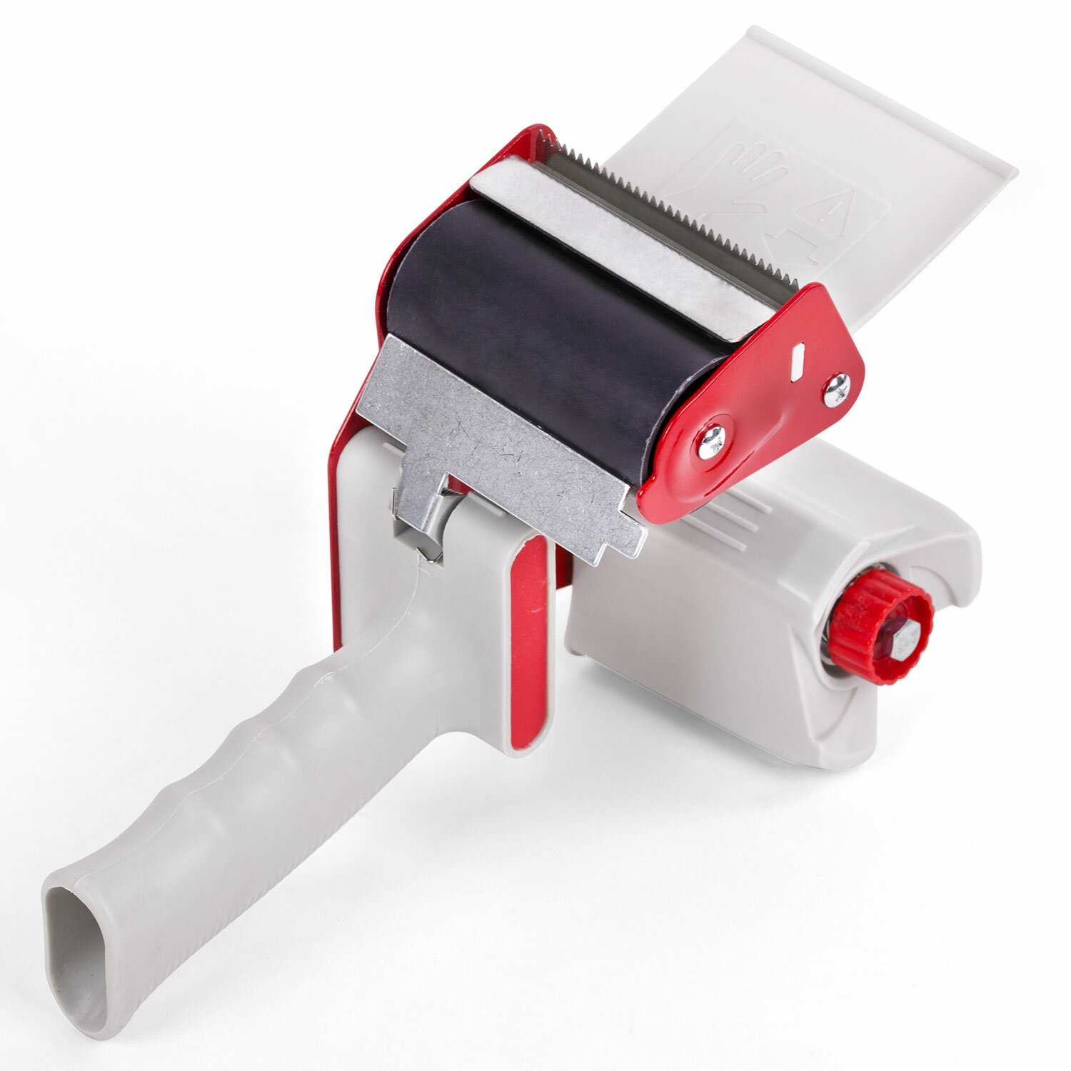 Предназначен для клейкой упаковочной ленты шириной до 75 мм. Удобный и надежный! Винт для регулировки натяжения ленты предотвращает ее случайное разматывание. Прижимная пластина способствует непрерывному наклеиванию.