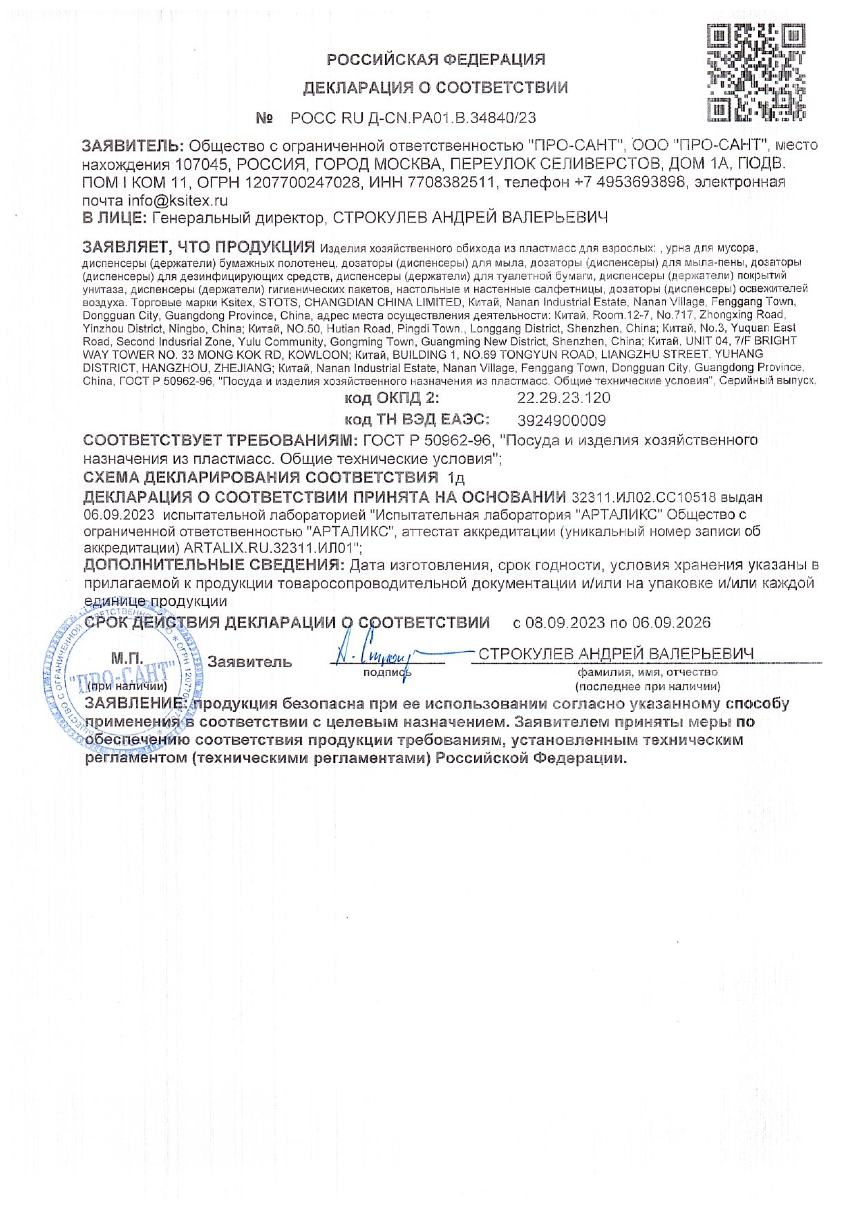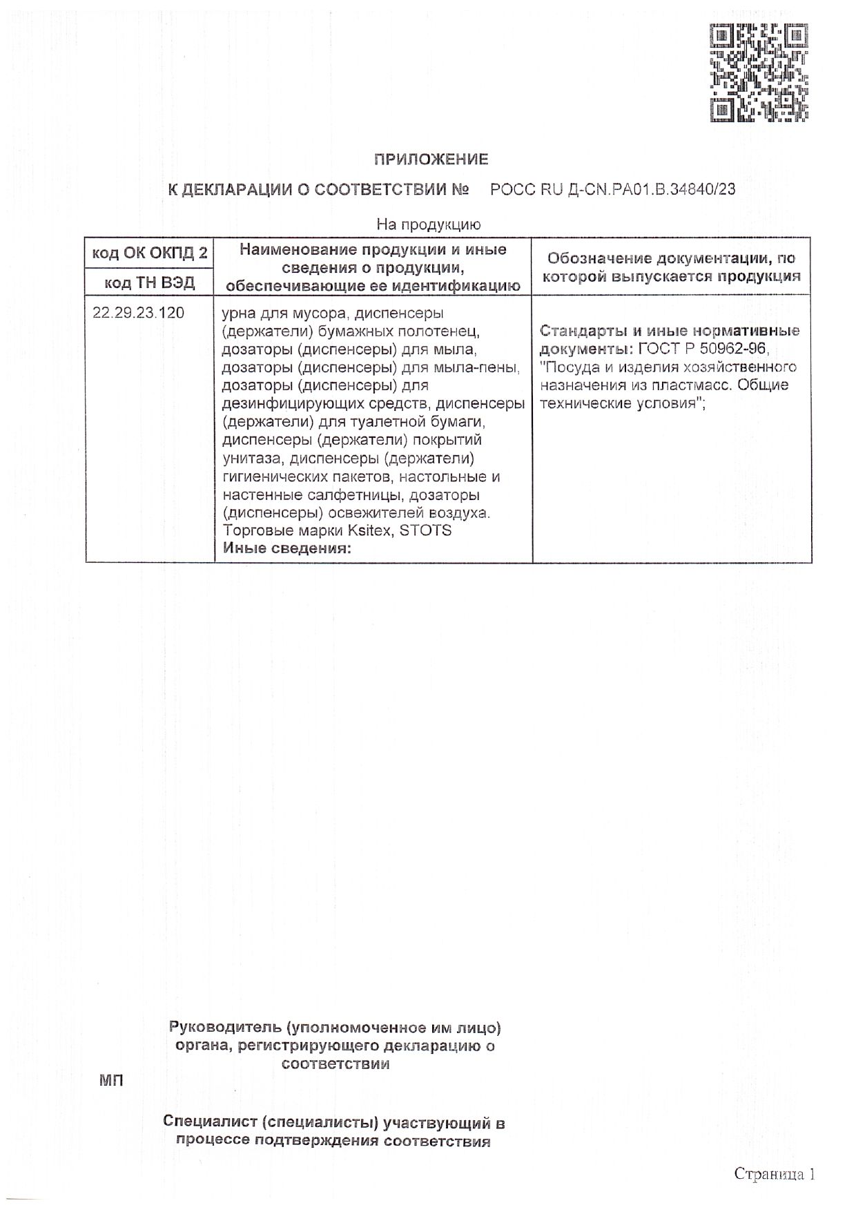 | Единый металлический ключ для всех диспенсеров бренда | да |