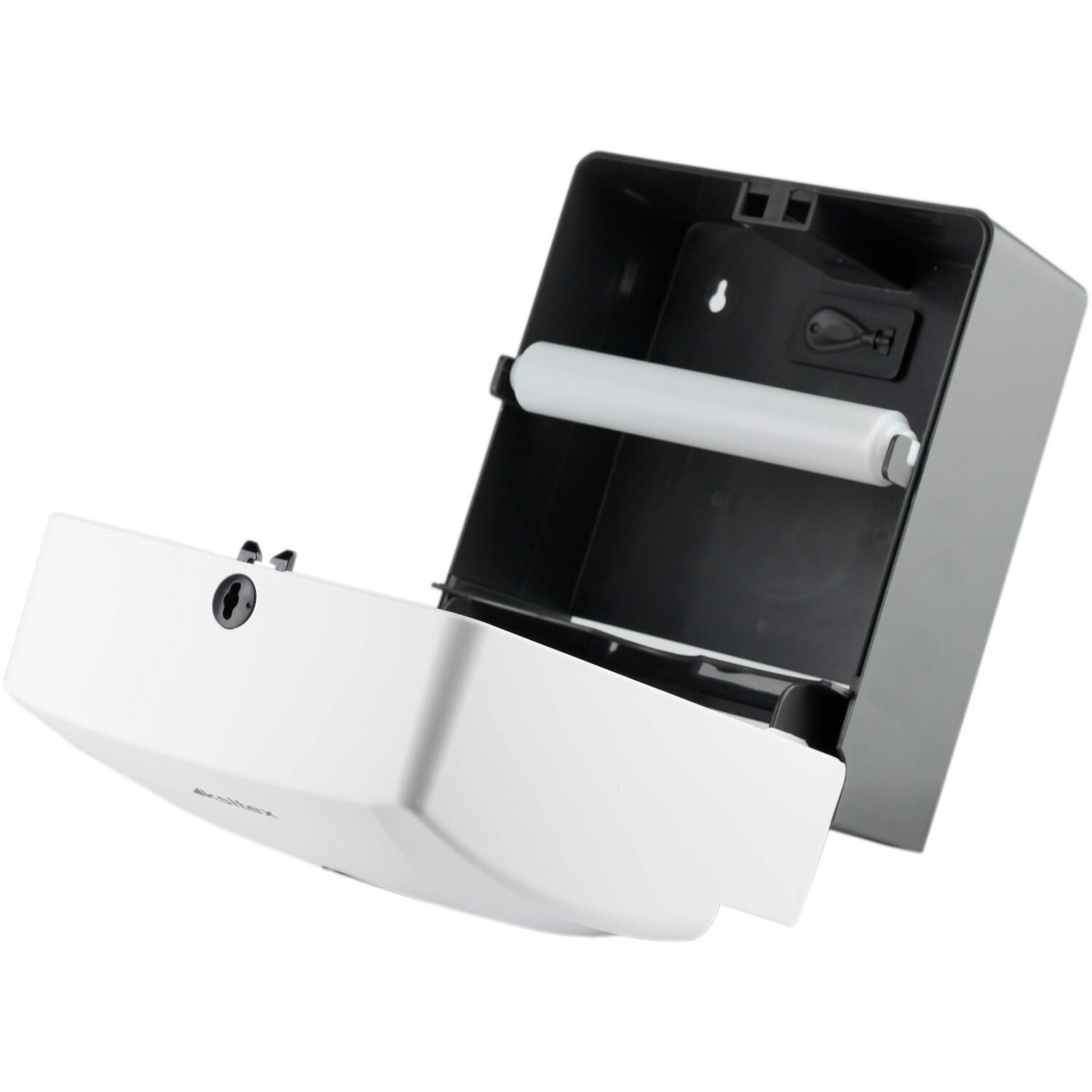 Предназначен для экономичного расхода бумажных полотенец (V)-сложения, а также рулонных полотенец. Изготовлен из пластика. Оснащен замком. Универсальное решение для туалетных комнат высокой и средней проходимости. Отвечает всем требованиям гигиены.