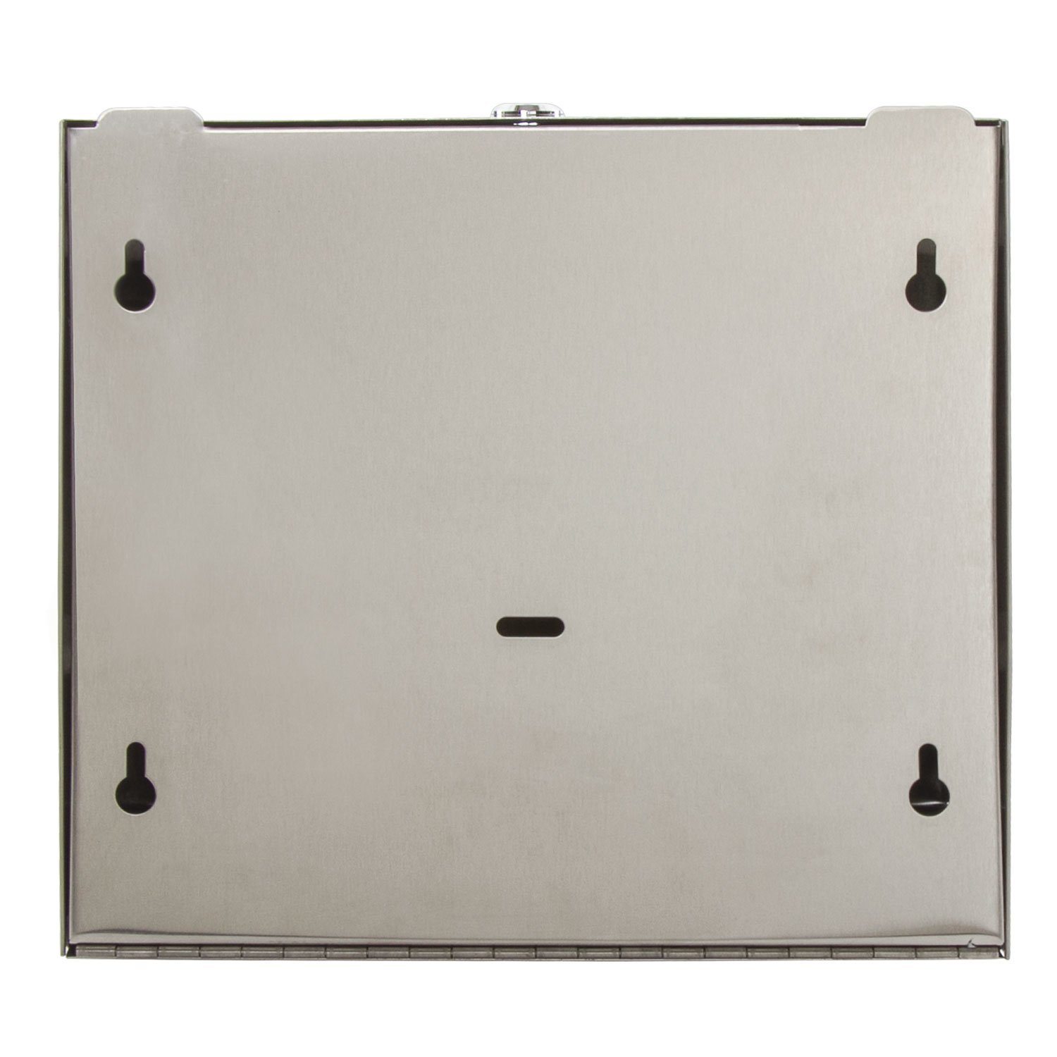 Диспенсер предназначен для подачи бумажных полотенец interfold, Z- и W-сложения. Антивандальный корпус изготовлен из нержавеющей стали. Имеется окошко для контроля остатка полотенец. Сочетается с расходными материалами других производителей. Оборудован замком с ключом. В комплект входят крепежные материалы для установки. Размер - 260х275х103 мм.