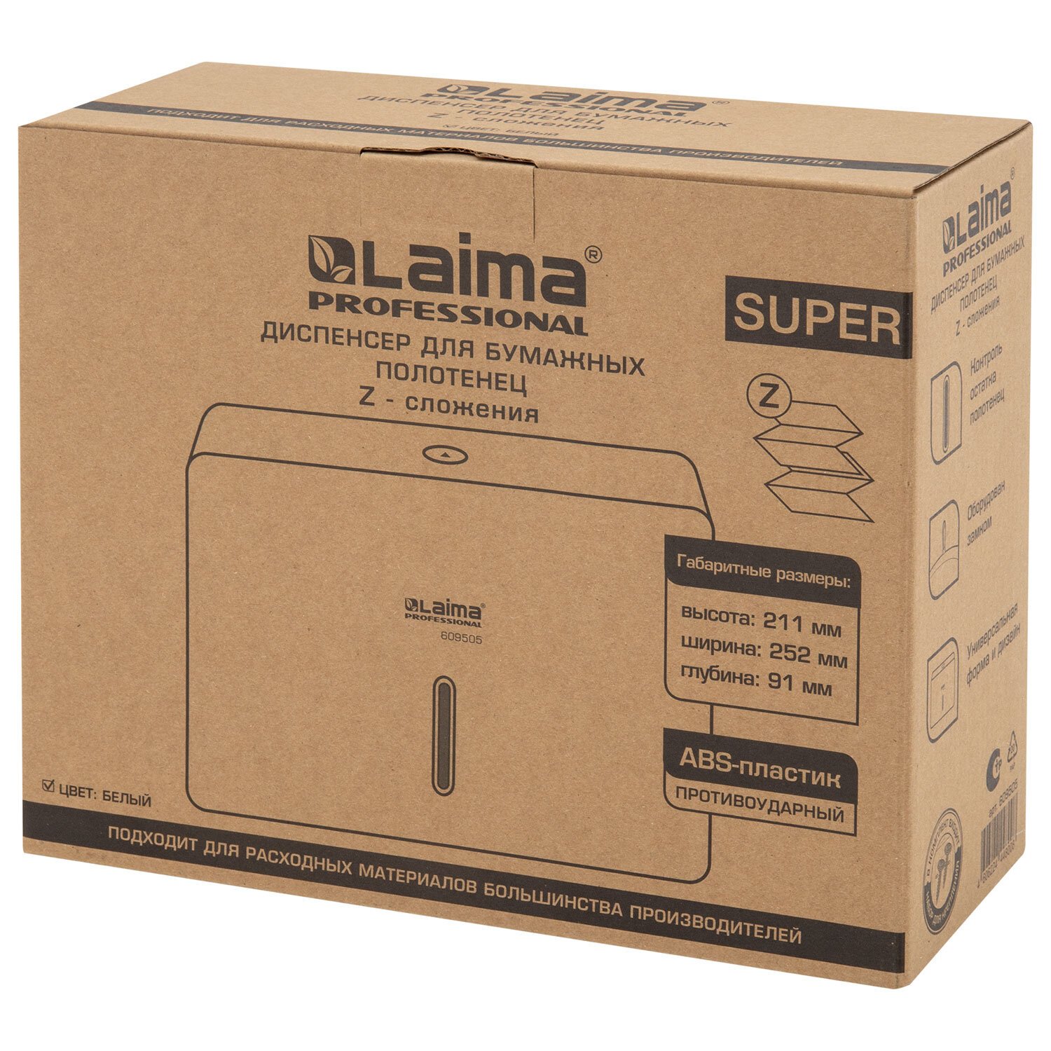 Диспенсер для полотенец LAIMA PROFESSIONAL SUPER (Система H2), Z-сложения, ABS-пластик, белый, 609505