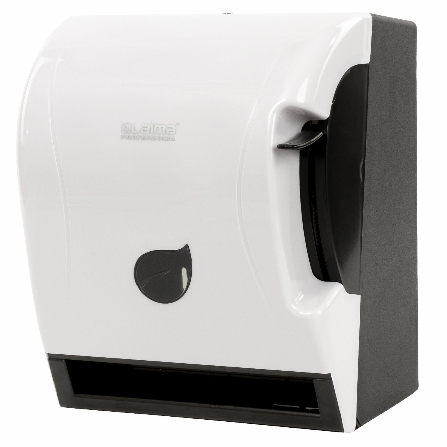 Диспенсер для полотенец в рулонах LAIMA PROFESSIONAL ECO (H1), механический, с рычагом, белый, ABS-пластик, 606549