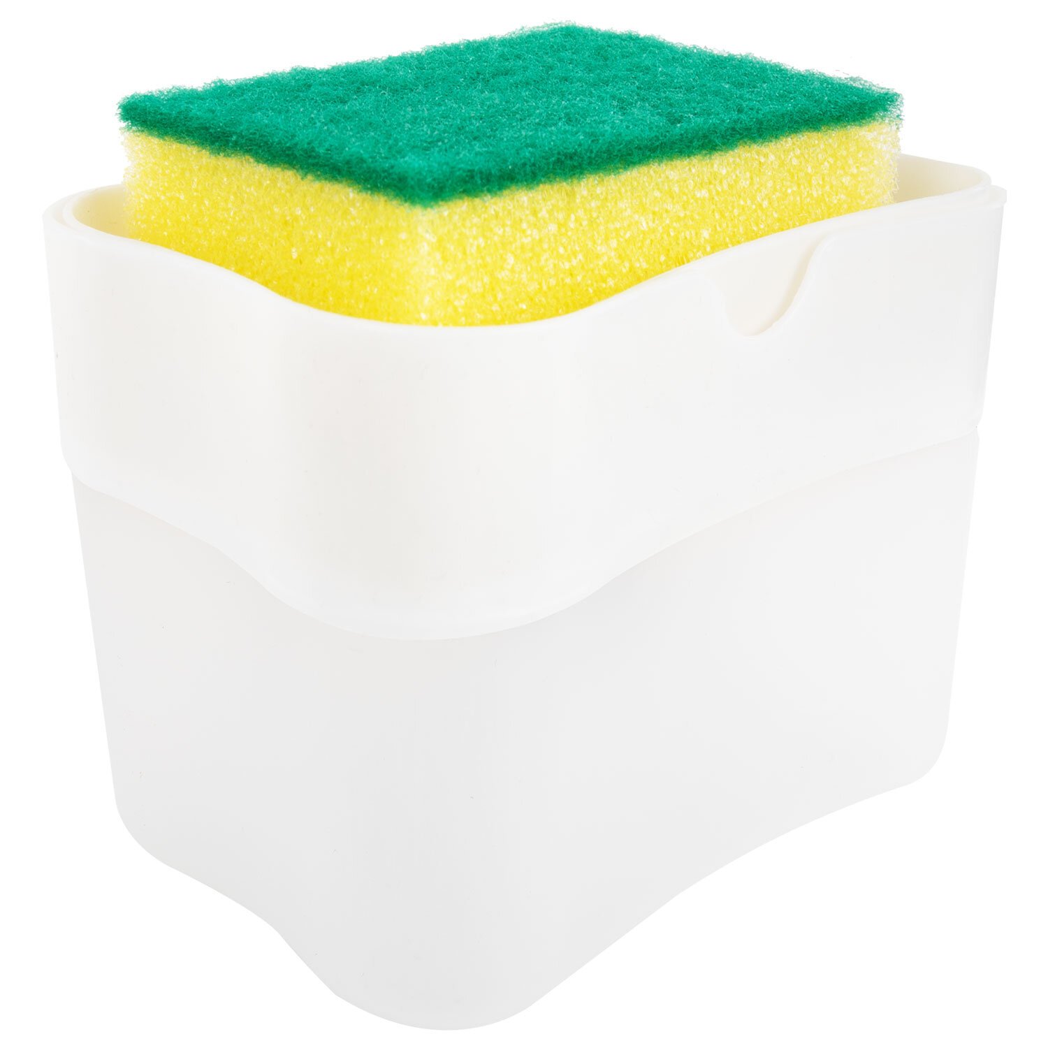 Диспенсер/дозатор для моющего средства, органайзер + губка, БЕЛЫЙ, 14,5х9х10см, LAIMA HOME, 700041