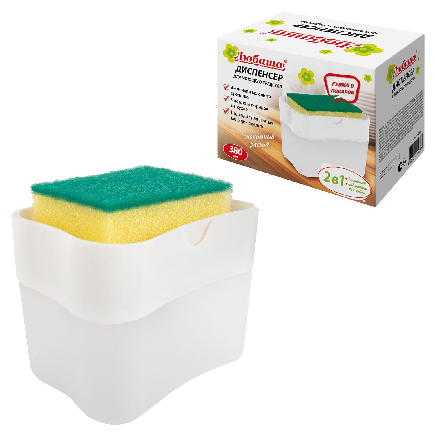 Диспенсер/дозатор для моющего средства, органайзер + губка, БЕЛЫЙ, 7х14х11см, ЛЮБАША, 700039