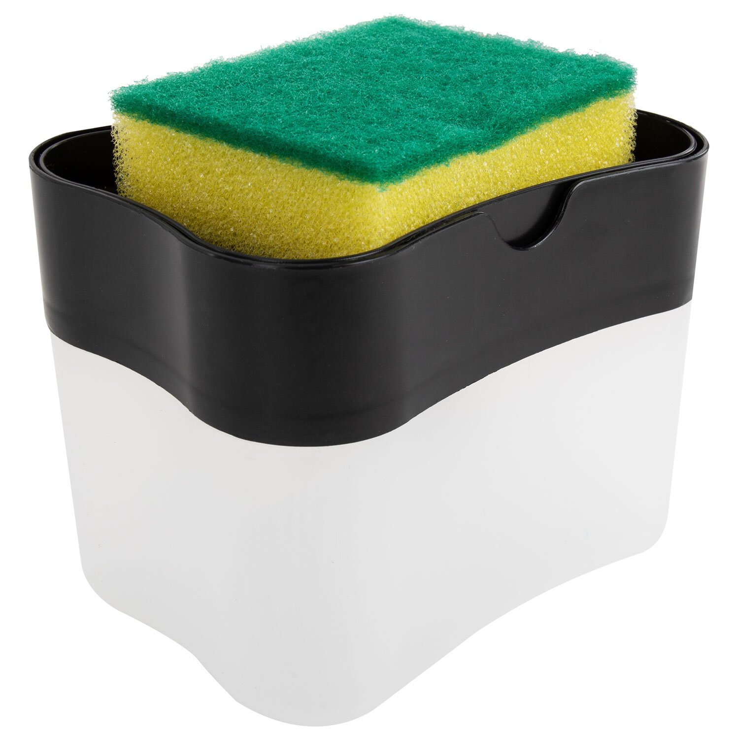 Диспенсер/дозатор для моющего средства, органайзер + губка, ЧЕРНЫЙ, 7х14х11см, ЛЮБАША, 700040