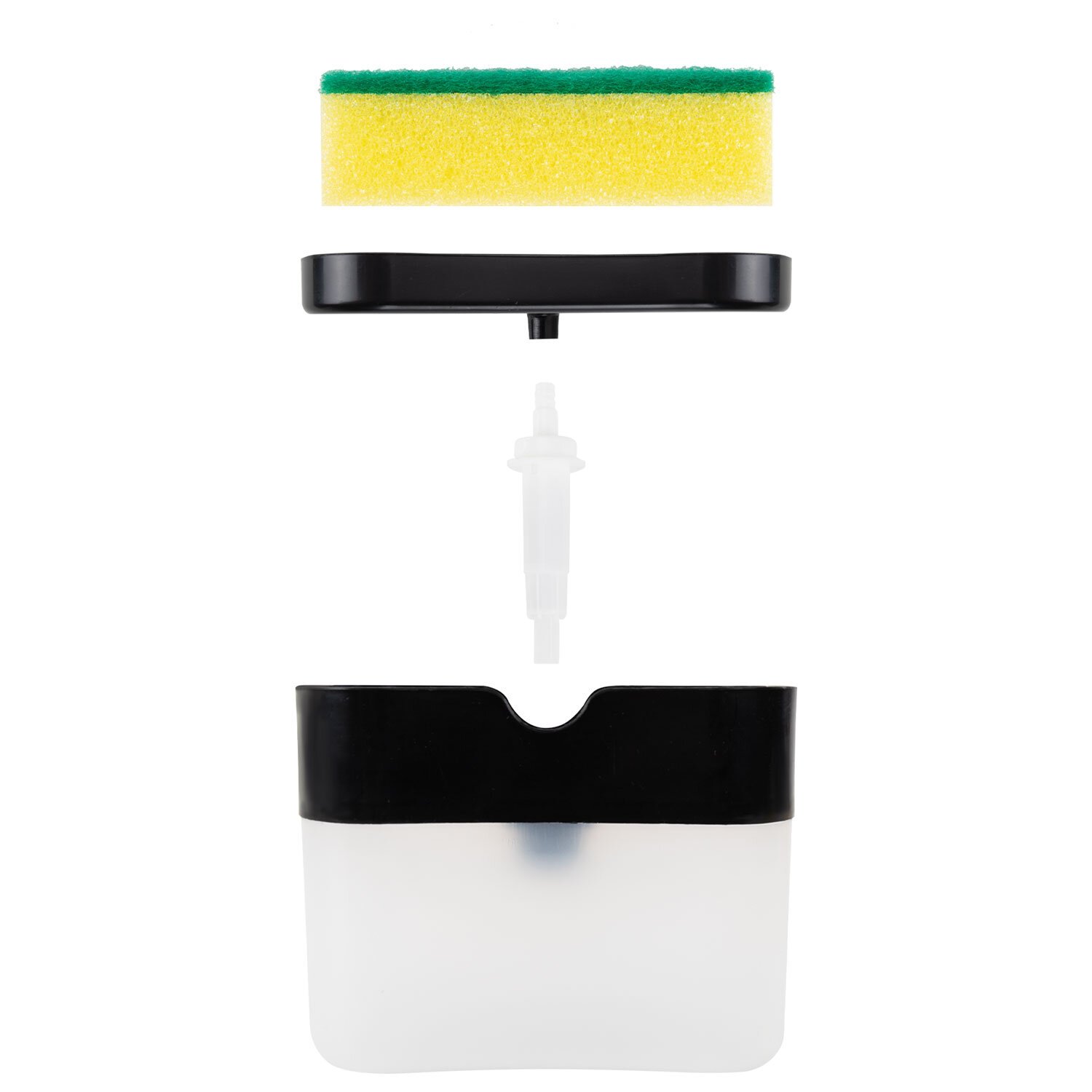 Диспенсер/дозатор для моющего средства органайзер + губка, ЧЕРНЫЙ, 14,5х9х10см, LAIMA HOME, 700042