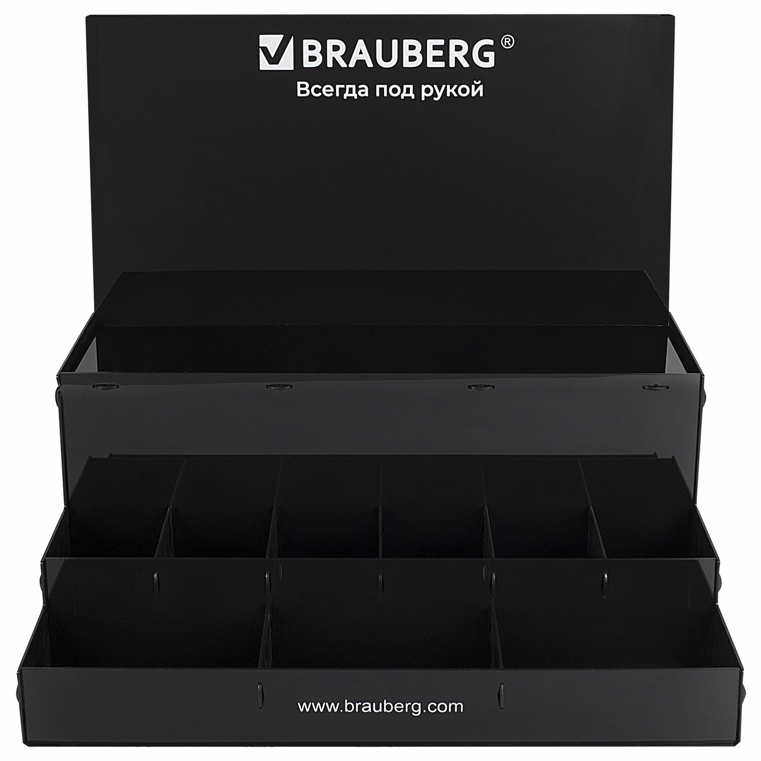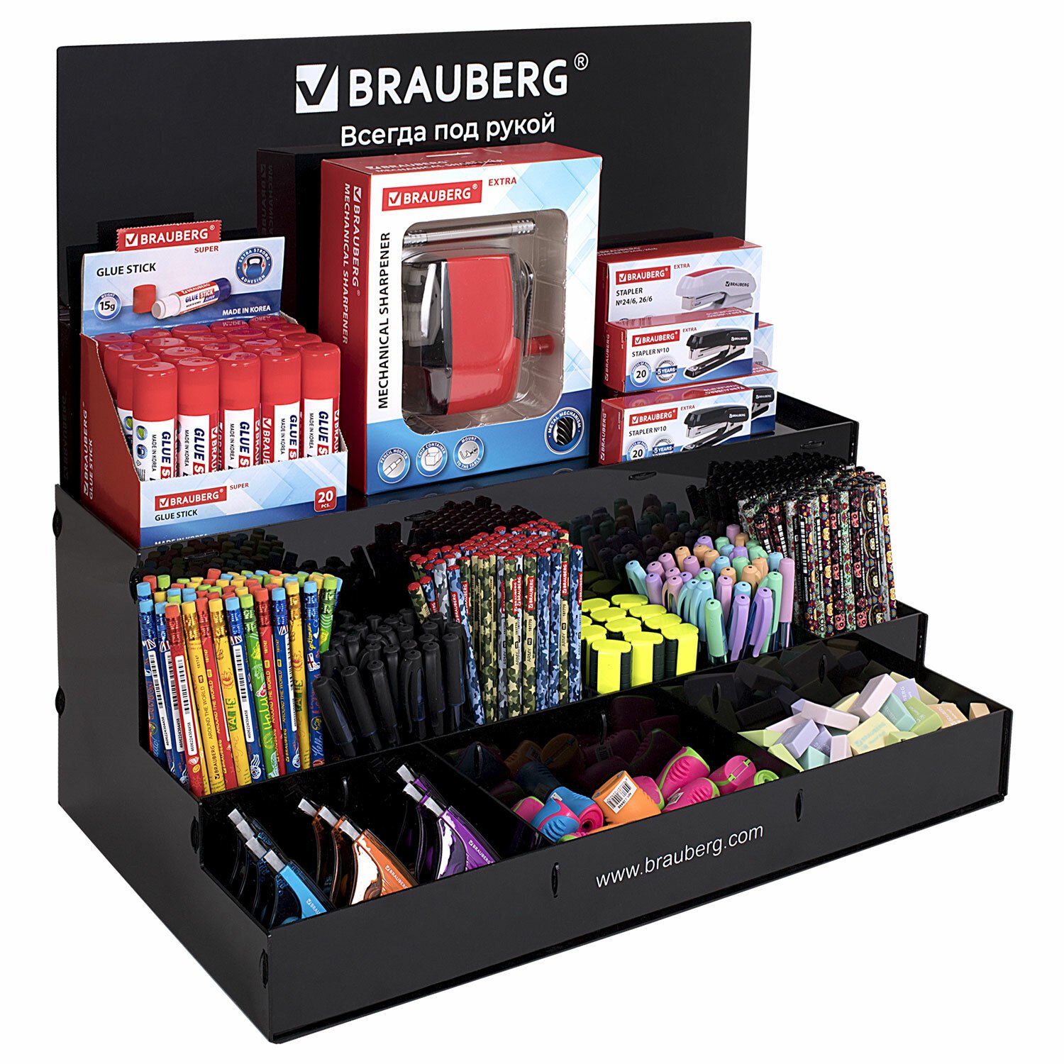 Настольный дисплей для размещения товара BRAUBERG обеспечивает эффективный способ выкладки и позволяет выгодно представить продаваемый ассортимент.