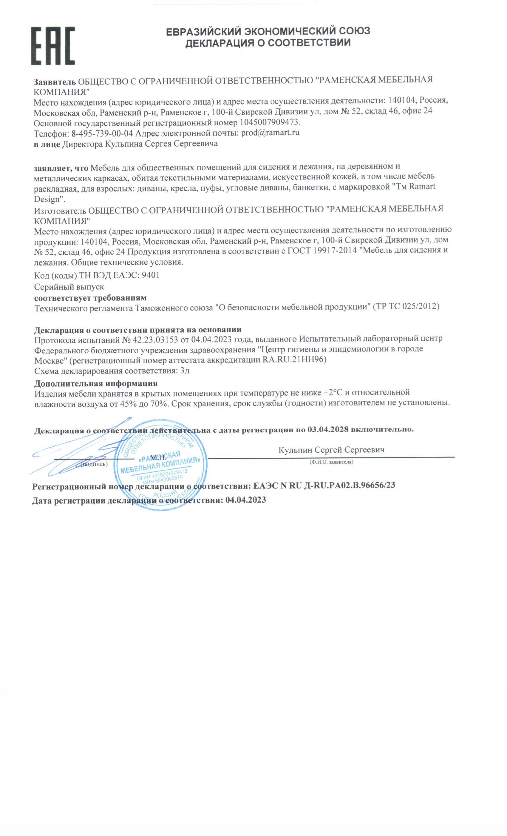 | Соответствует требованиям ГОСТа | ГОСТ 19917-2014 |
