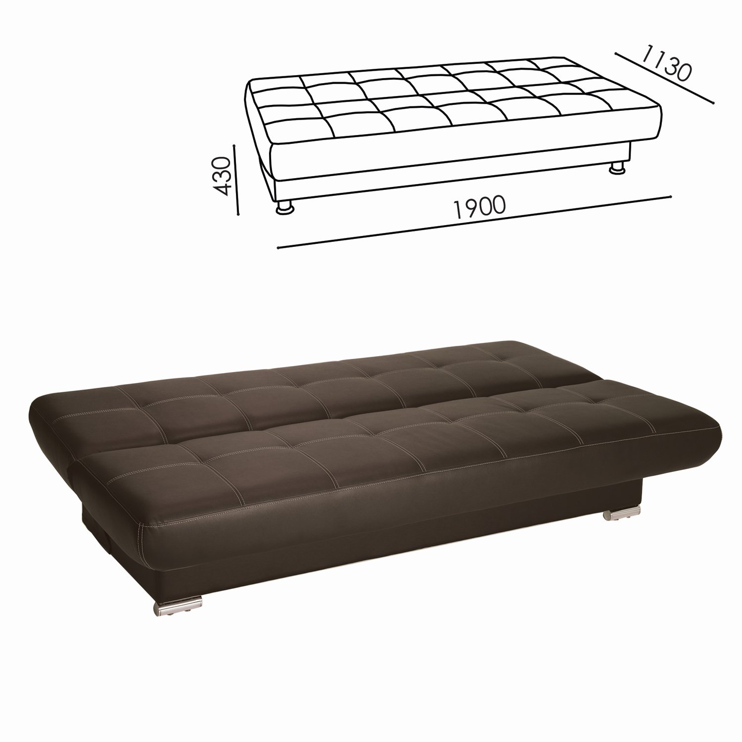 Диван мягкий раскладной "Модесто", 1900х900х820 мм, экокожа, коричневый