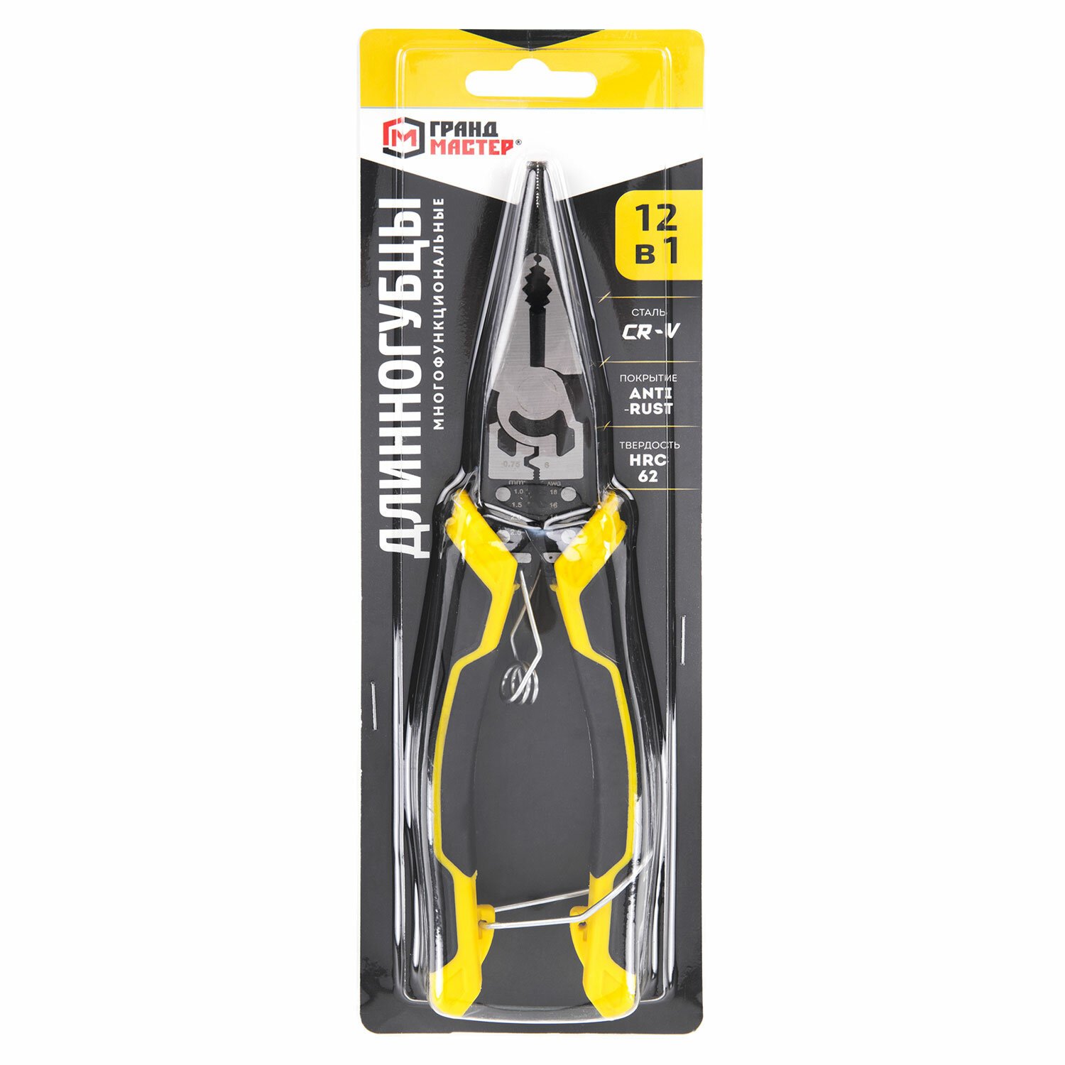 Длинногубцы многофункциональные 12 в 1, 220мм, CR-V - хромванадиевая сталь, ГРАНДМАСТЕР, LNP-220, 671254