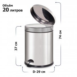 Ведро мусорное с педалью 15 литров, УСИЛЕННОЕ, хром, нержавеющая сталь, ТИТАН