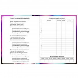 Предназначен для учащихся 1-11 классов. Твердая обложка надежно защищает внутренний блок и долго сохраняет привлекательный внешний вид. Благодаря глянцевой ламинации краски на изображении выглядят более яркими и насыщенными, исключается возможное истирание рисунка. Внутренний блок содержит 40 листов офсетной белой бумаги плотностью 60 г/м2.