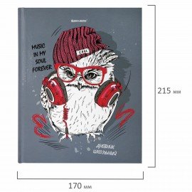 Дневник 1-11 класс 40 л., твердый, BRAUBERG, глянцевая ламинация, "Cool Owl", 106371