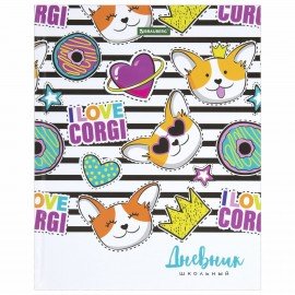 Дневник 1-11 класс 40 л., твердый, BRAUBERG, глянцевая ламинация, "Корги", 106854