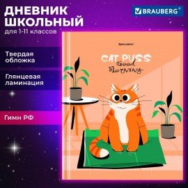 Дневник 1-11 класс 40 л., твердый, BRAUBERG, глянцевая ламинация, "Cute cat", 106852