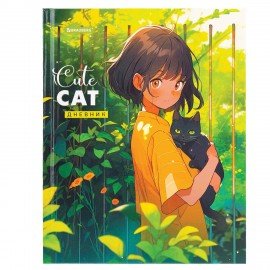 Дневник 1-11 класс 40 л., твердый, BRAUBERG, глянцевая ламинация, "Девочка и кот", 107166