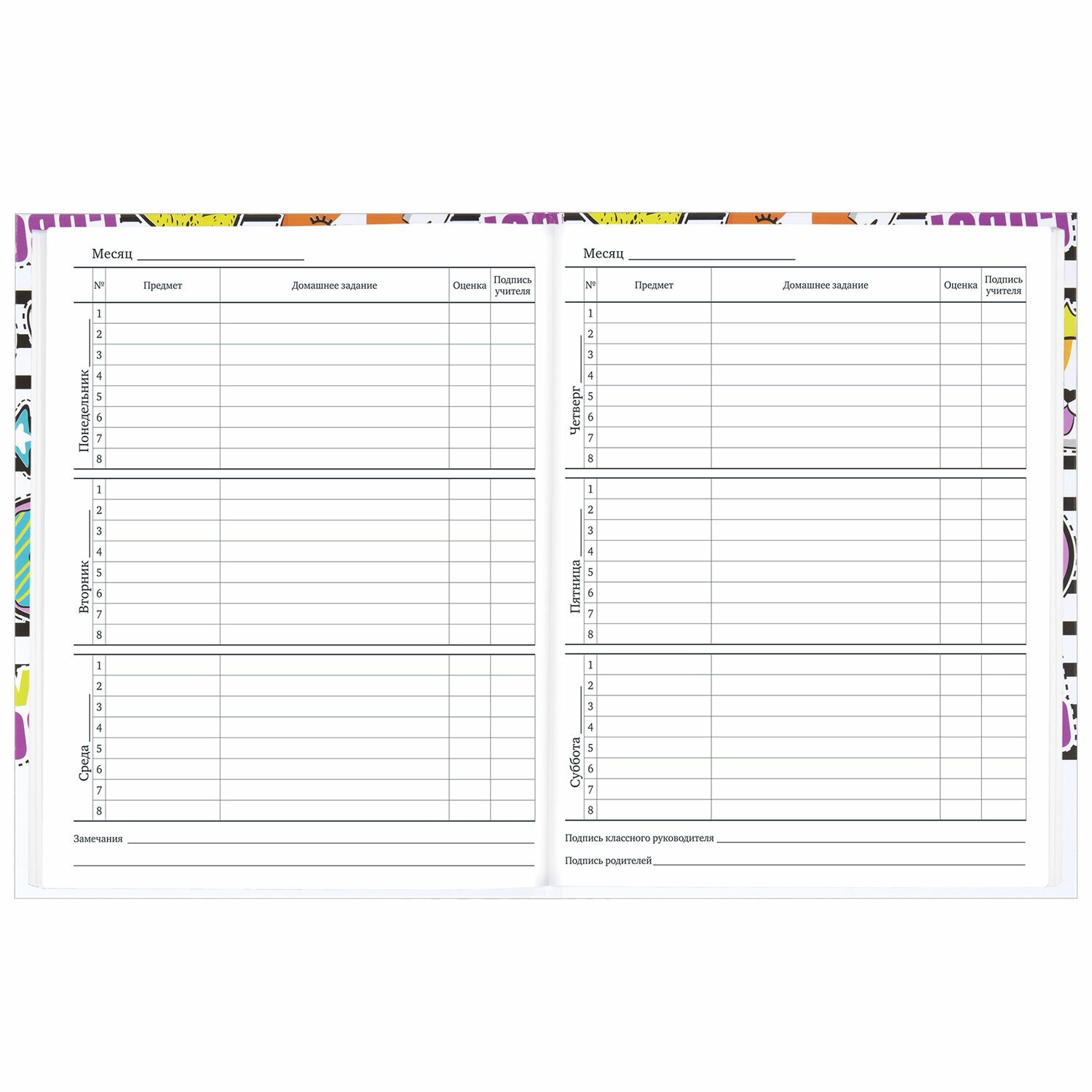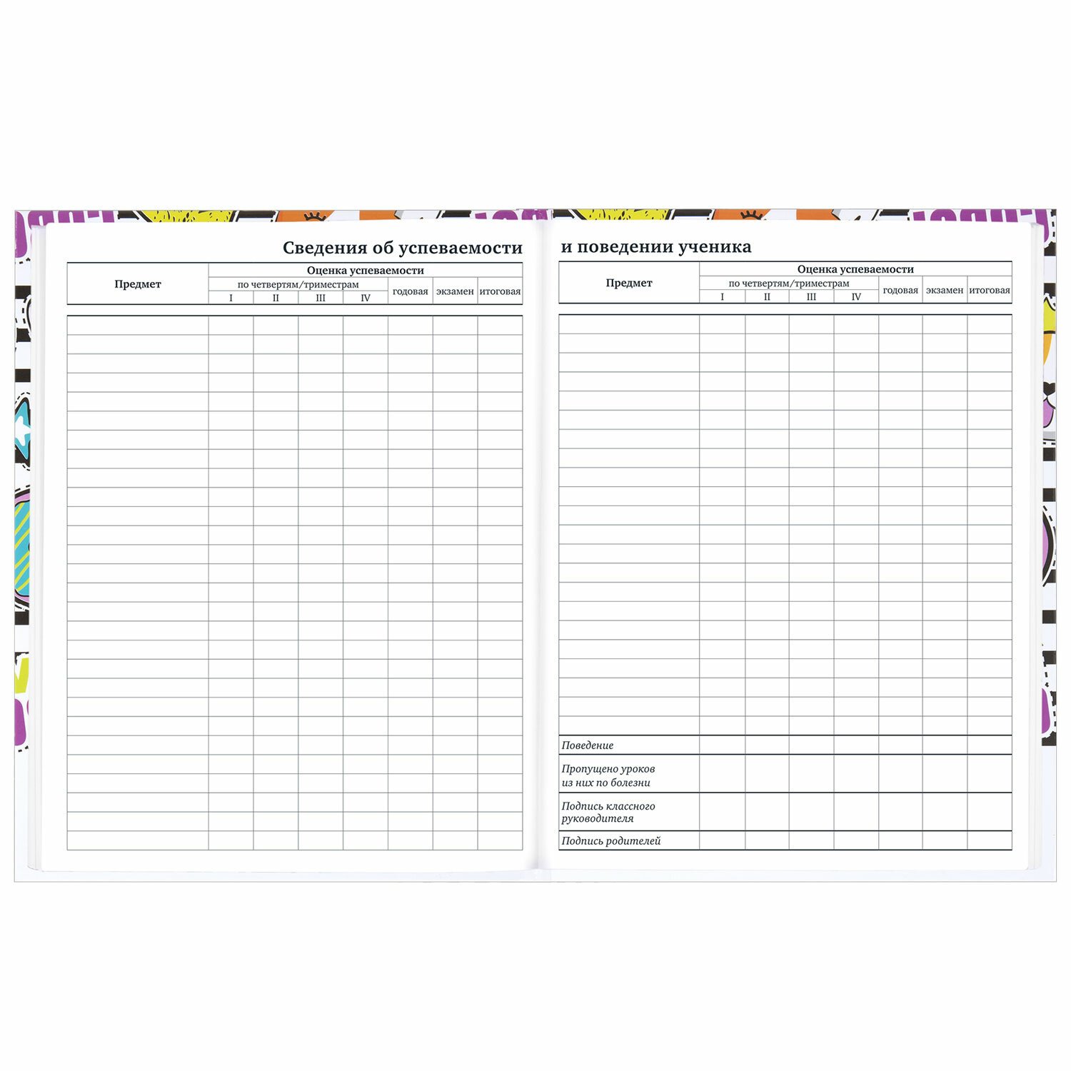 Универсальный дневник BRAUBERG с оригинальной обложкой выполняет функции журнала регистрации оценок и домашних заданий, полученных на уроках, замечаний по поведению и прилежанию, а также служит средством общения для учителей и родителей.