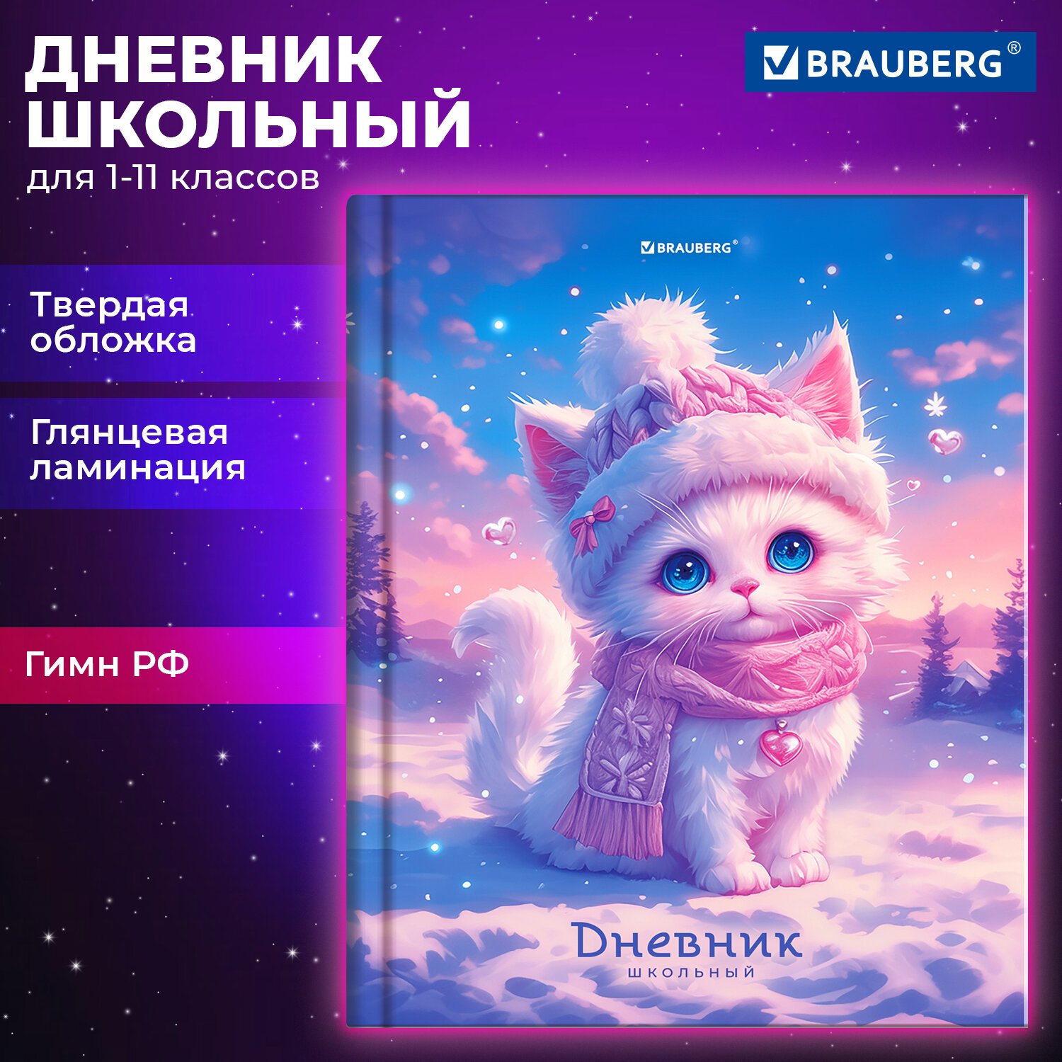 Дневник 1-11 класс 40 л., твердый, BRAUBERG, глянцевая ламинация, Winter Cat, 107169