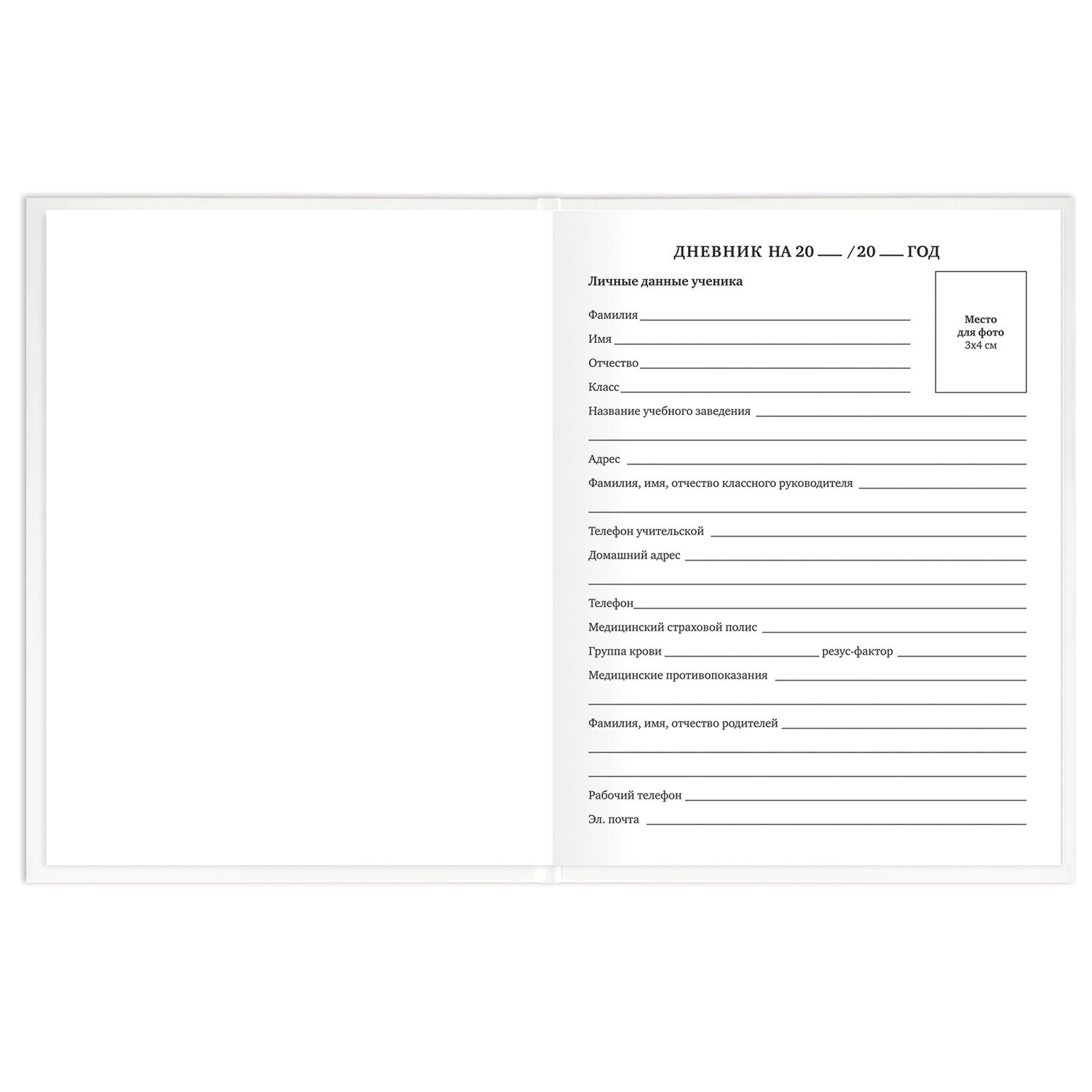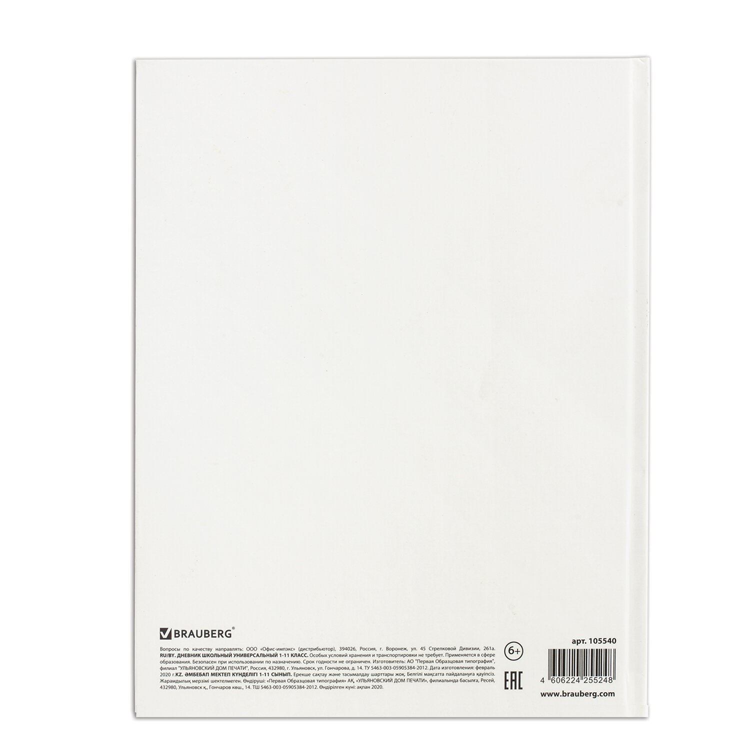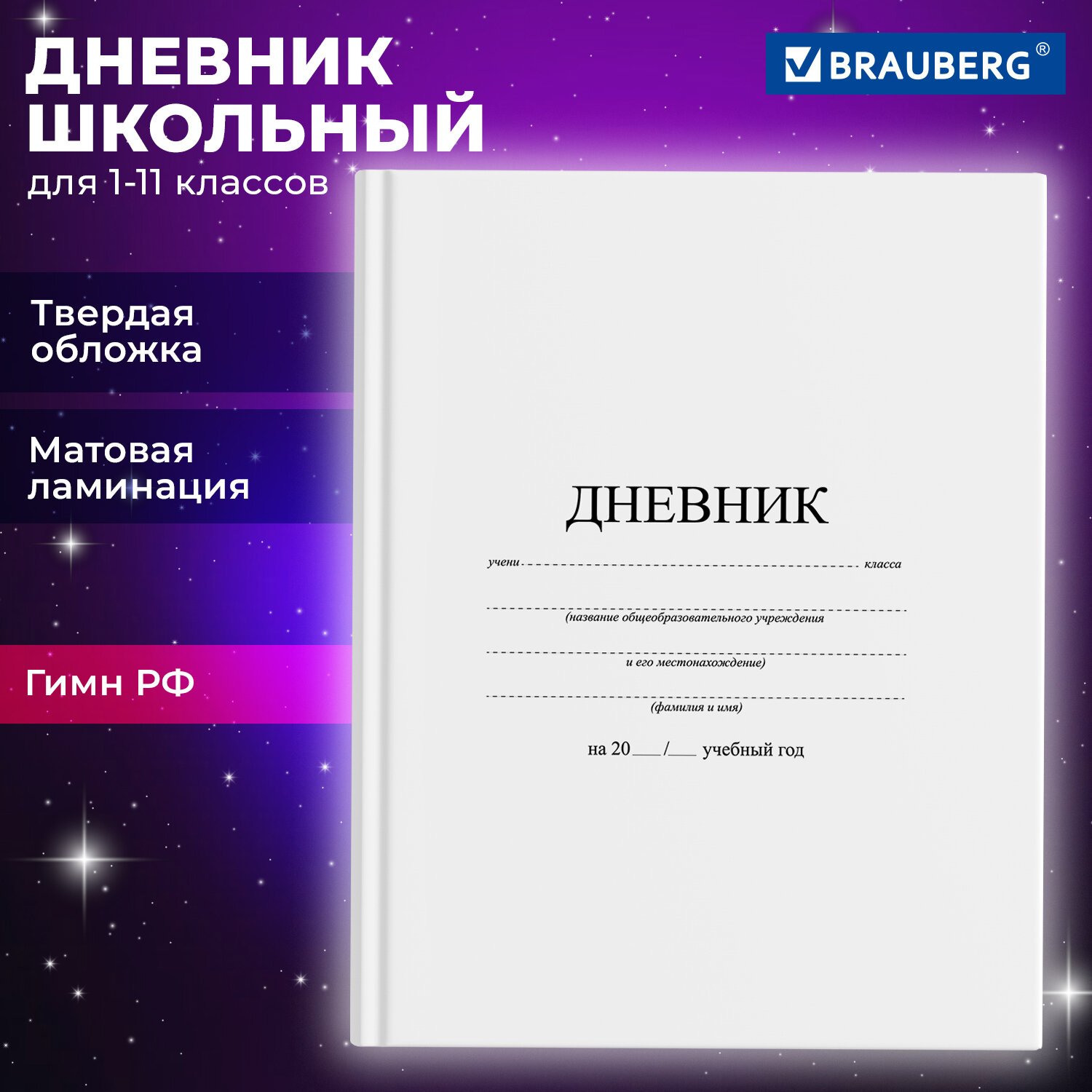 Дневник 1-11 класс 40 л., твердый, BRAUBERG, матовая ламинация, БЕЛЫЙ, 105540