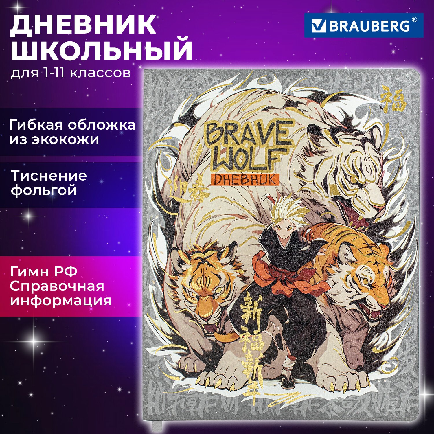 Дневник 1-11 класс 48 л., кожзам (гибкая), печать, фольга, BRAUBERG, "Аниме", 106917