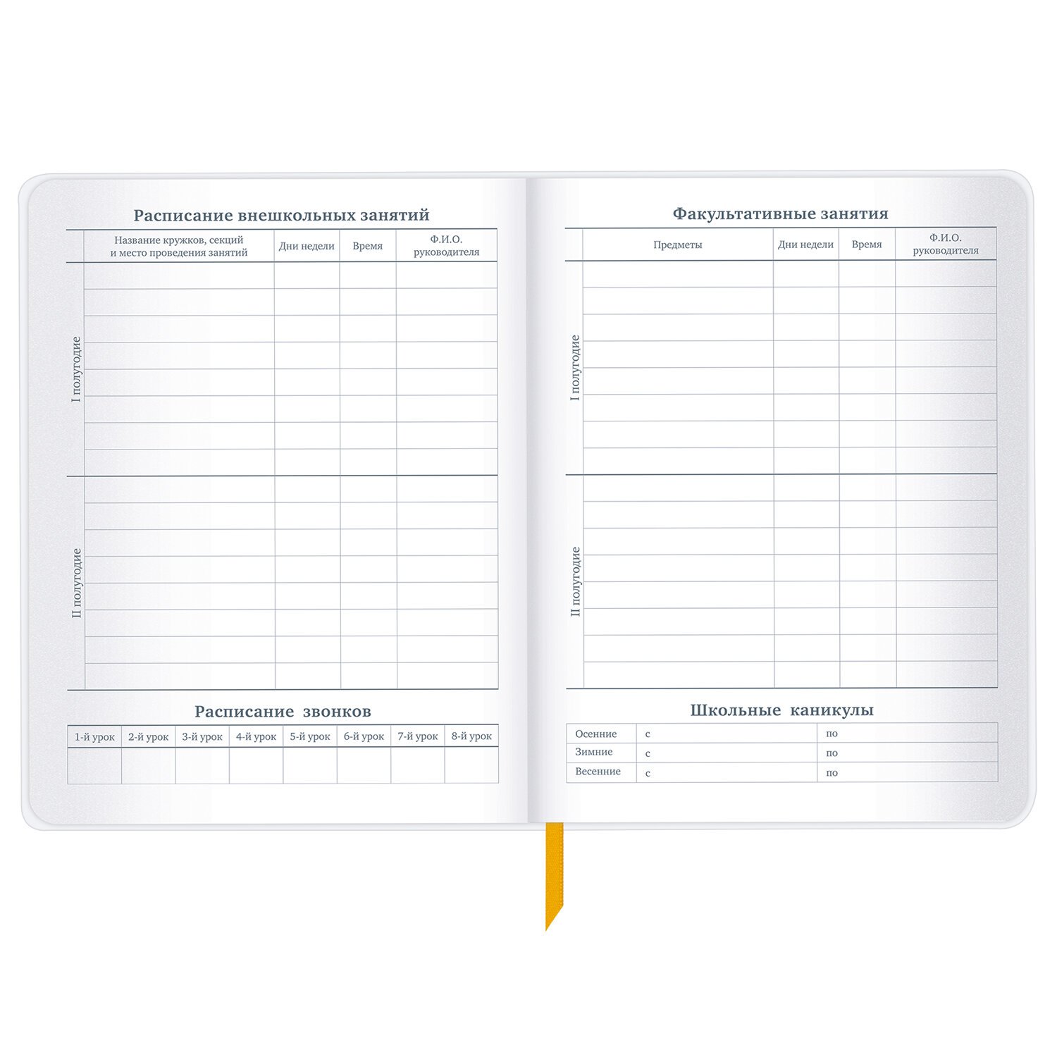 Предназначен для учащихся 1-11 классов. Интегральная обложка из экокожи надежно защищает бумагу и долго сохраняет привлекательный внешний вид, а тиснение фольгой придает изделию оригинальность. Внутренний блок содержит 48 листов и состоит из офсетной белой бумаги повышенной плотности 70 г/м2. В справочном материале собраны основные подсказки для учащихся. Для удобства пользования дневник снабжен закладкой-ляссе.
