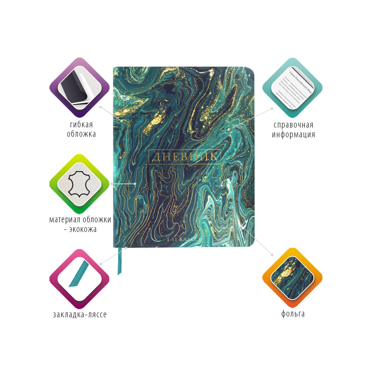 Дневник 1-11 класс 48 л., кожзам (гибкая), печать, фольга, BRAUBERG, "Мрамор", 106179
