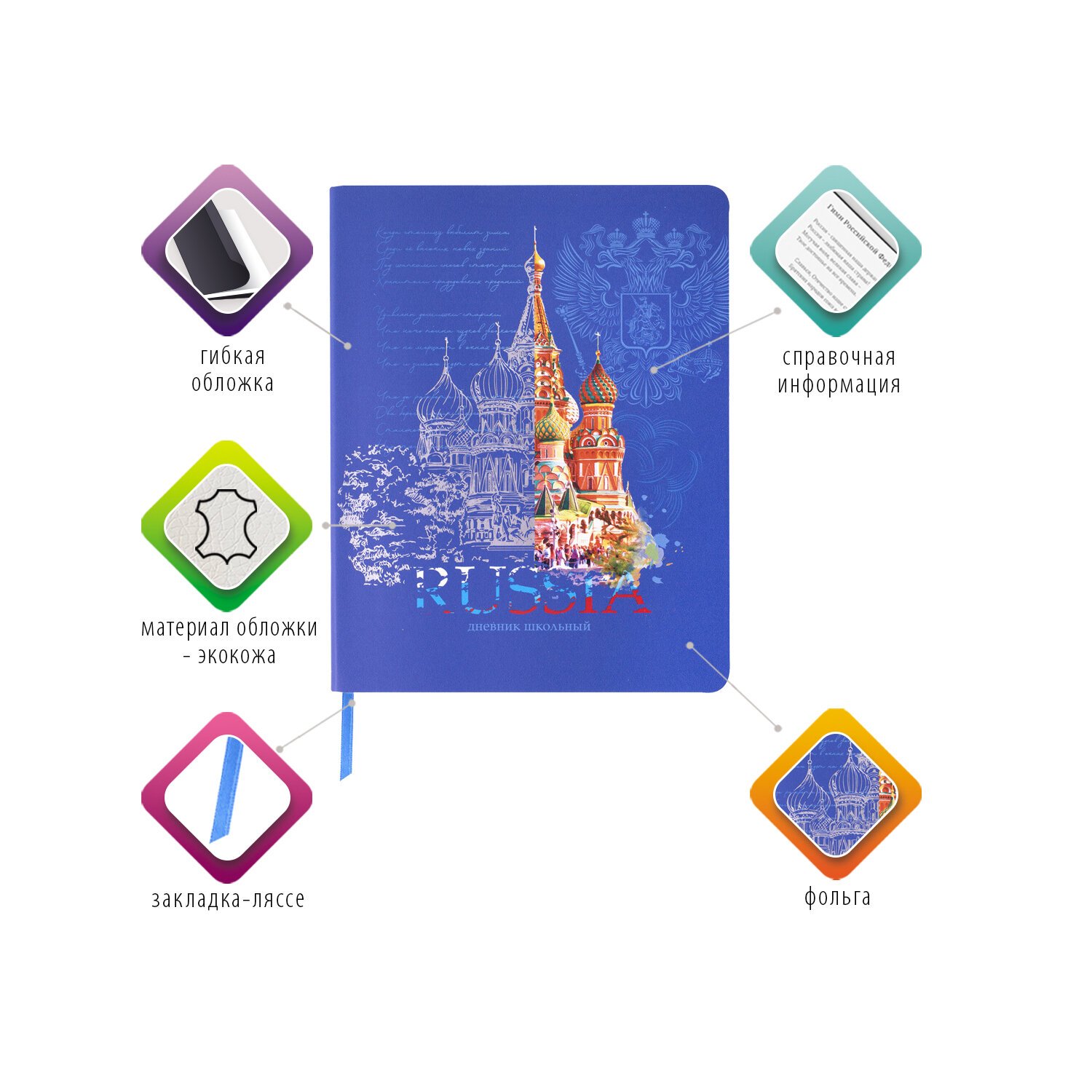 Дневник 1-11 класс 48 л., кожзам (гибкая), печать, фольга, BRAUBERG, "Россия", 106175