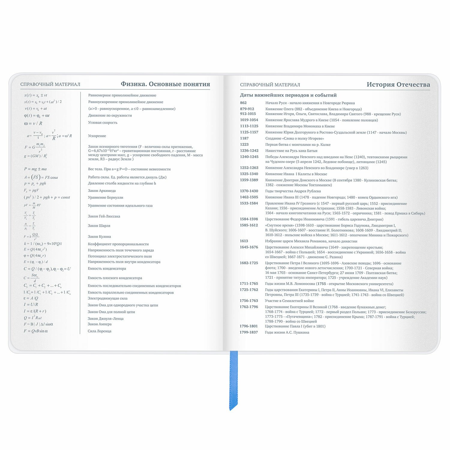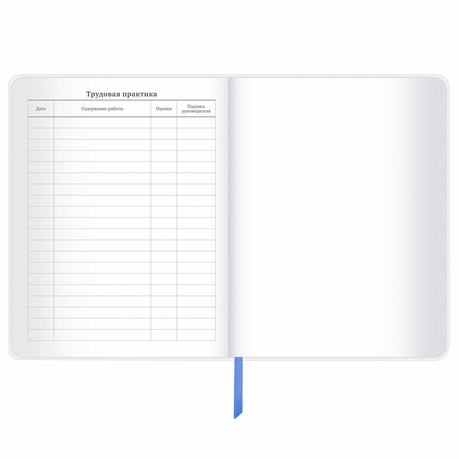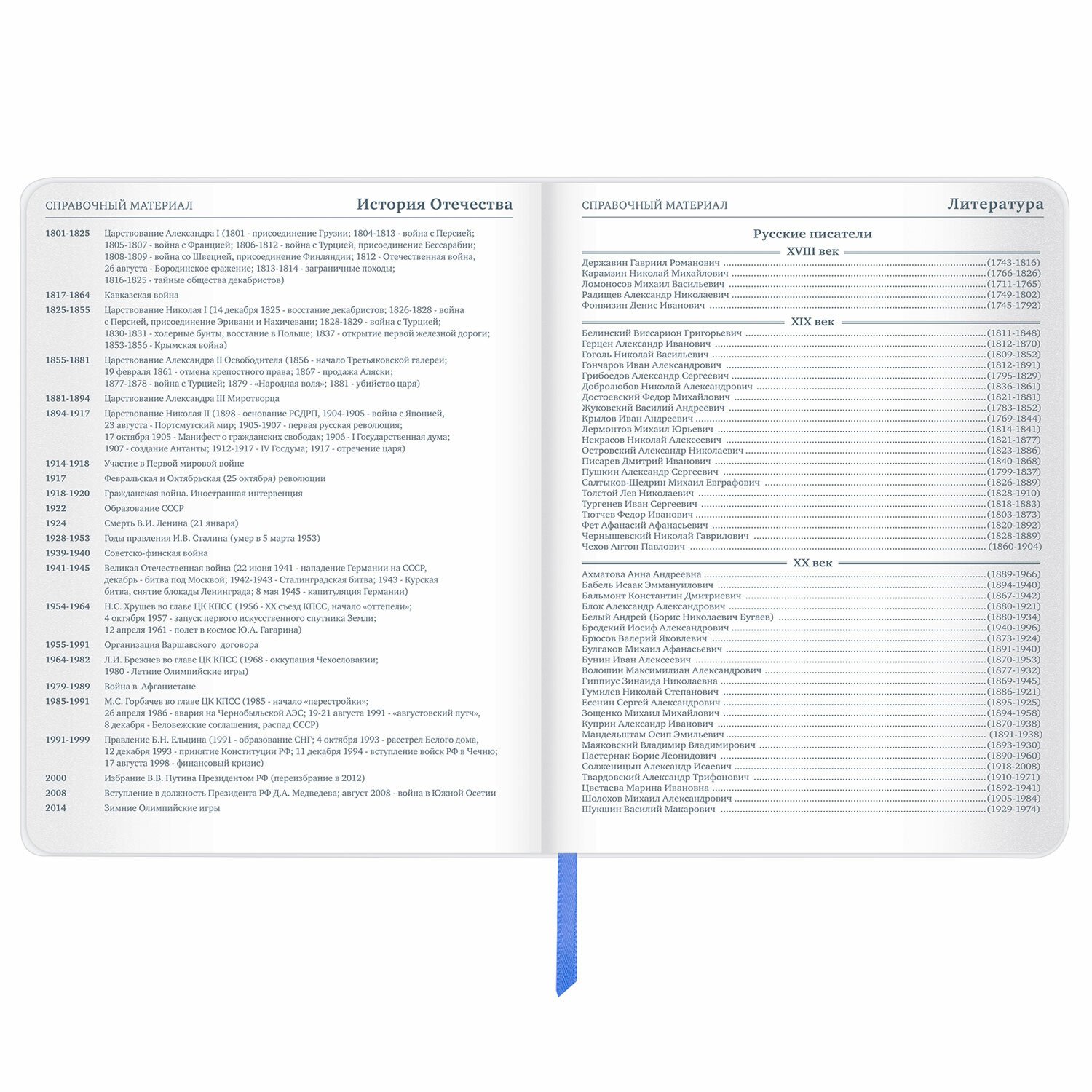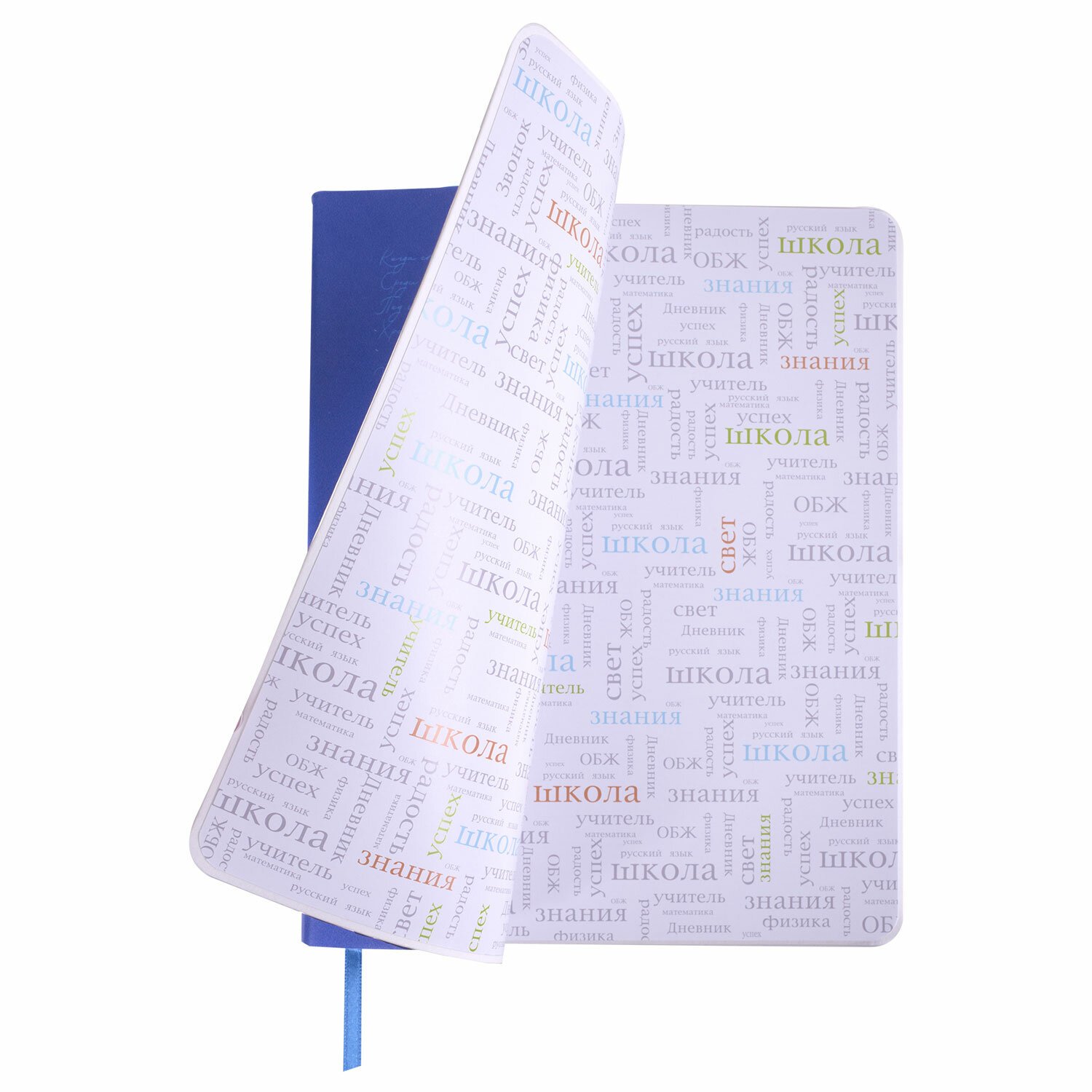 Предназначен для учащихся 1-11 классов. Интегральная обложка из экокожи надежно защищает бумагу и долго сохраняет привлекательный внешний вид, а тиснение фольгой придает изделию оригинальность. Внутренний блок содержит 48 листов и состоит из офсетной белой бумаги повышенной плотности 70 г/м2. В справочном материале собраны основные подсказки для учащихся. Для удобства пользования дневник снабжен закладкой-ляссе.