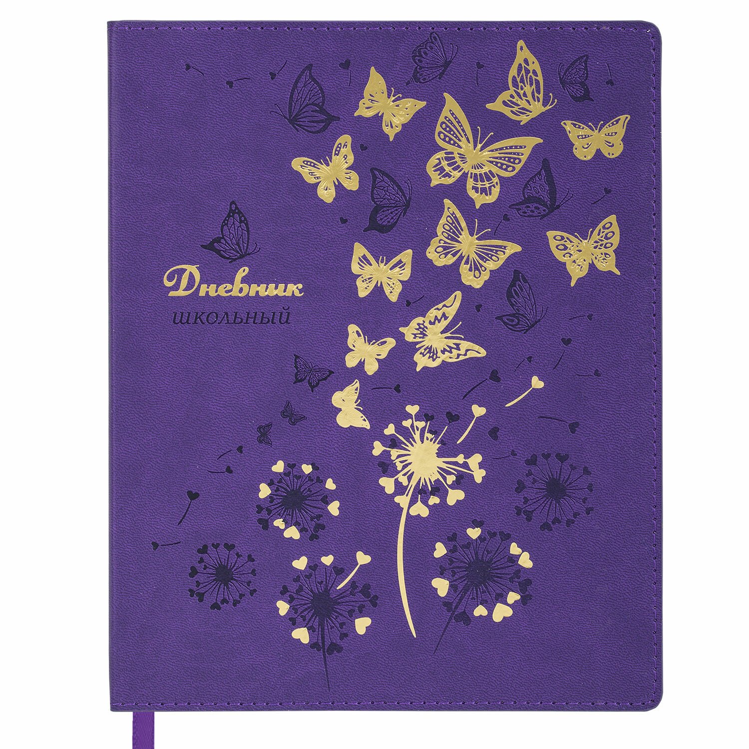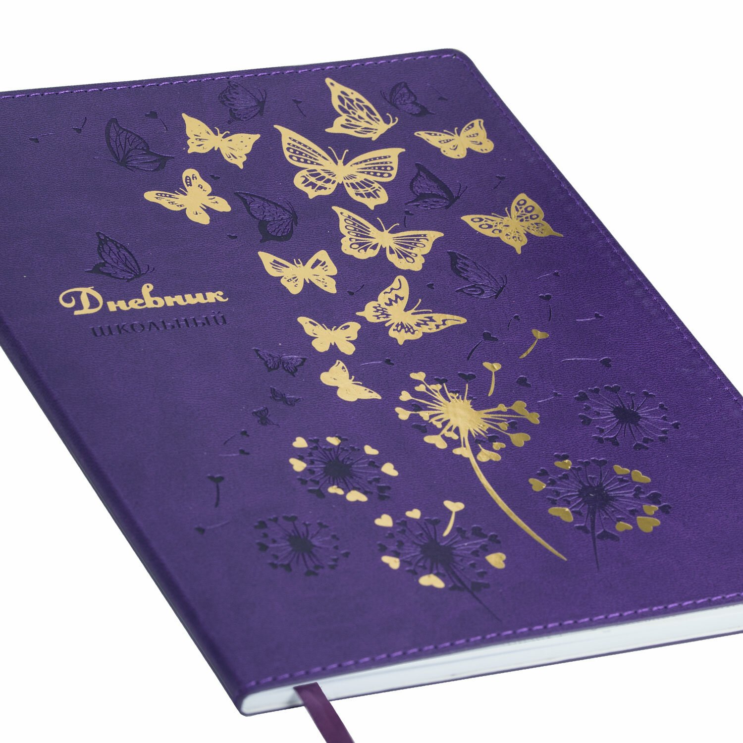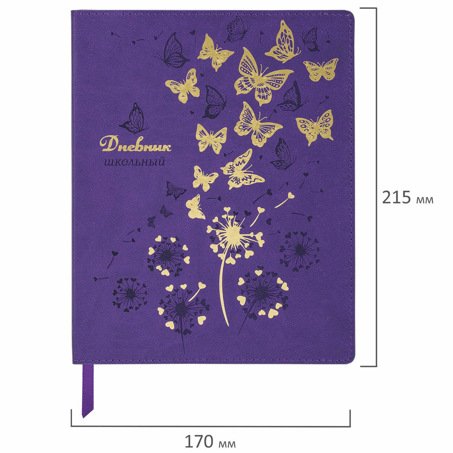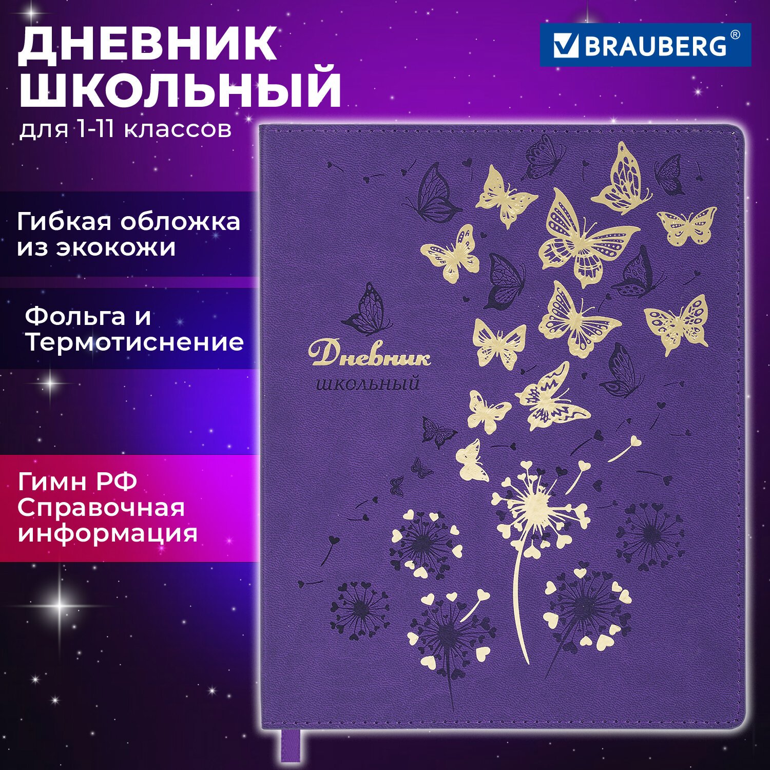 Дневник 1-11 класс 48 л., кожзам (гибкая), термотиснение, фольга, BRAUBERG, "Бабочки", 106913