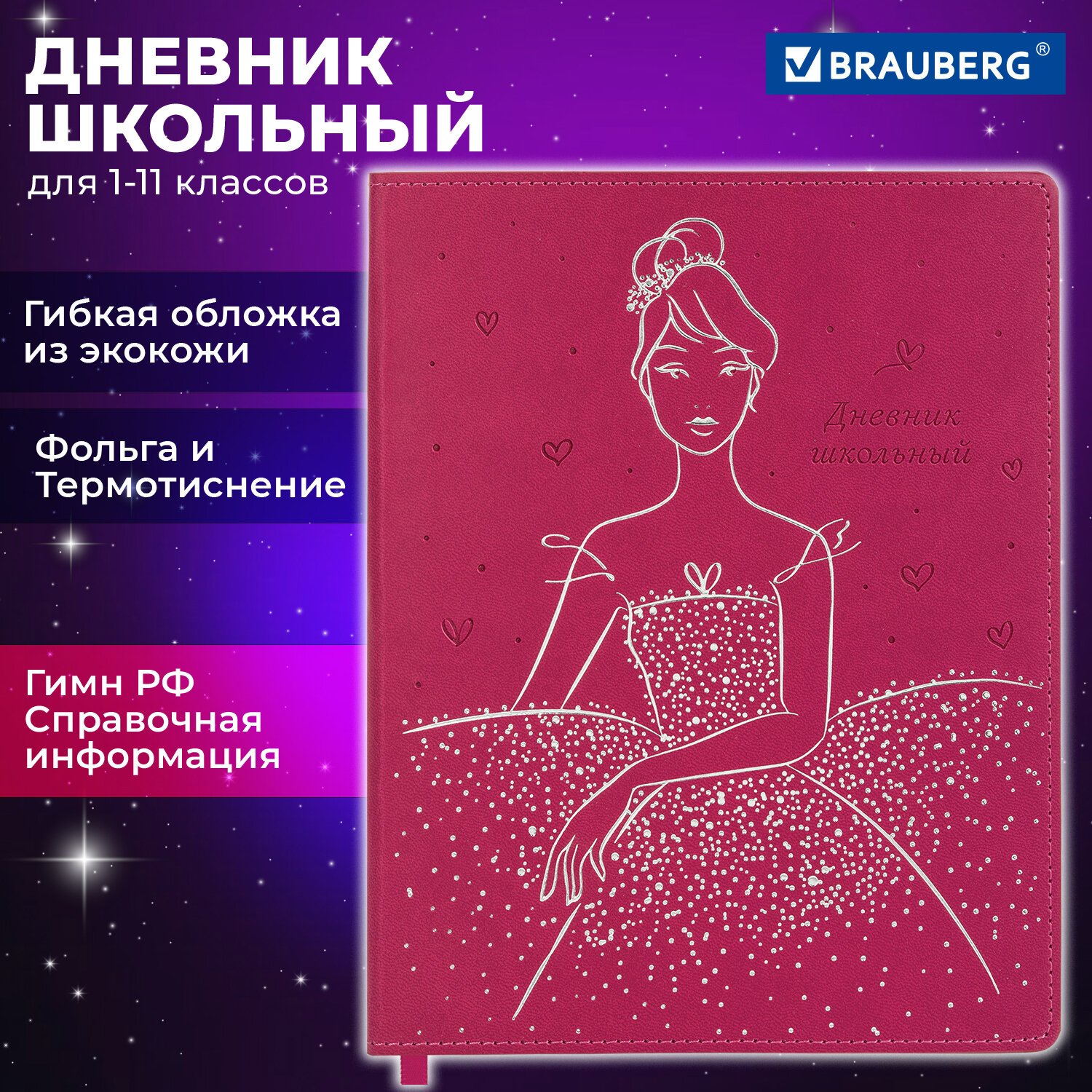 Дневник 1-11 класс 48 л., кожзам (гибкая), термотиснение, фольга, BRAUBERG, "Балерина", 106911