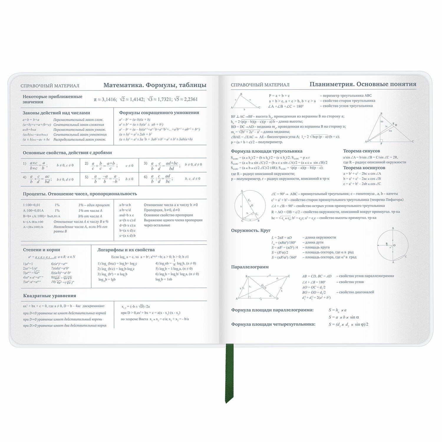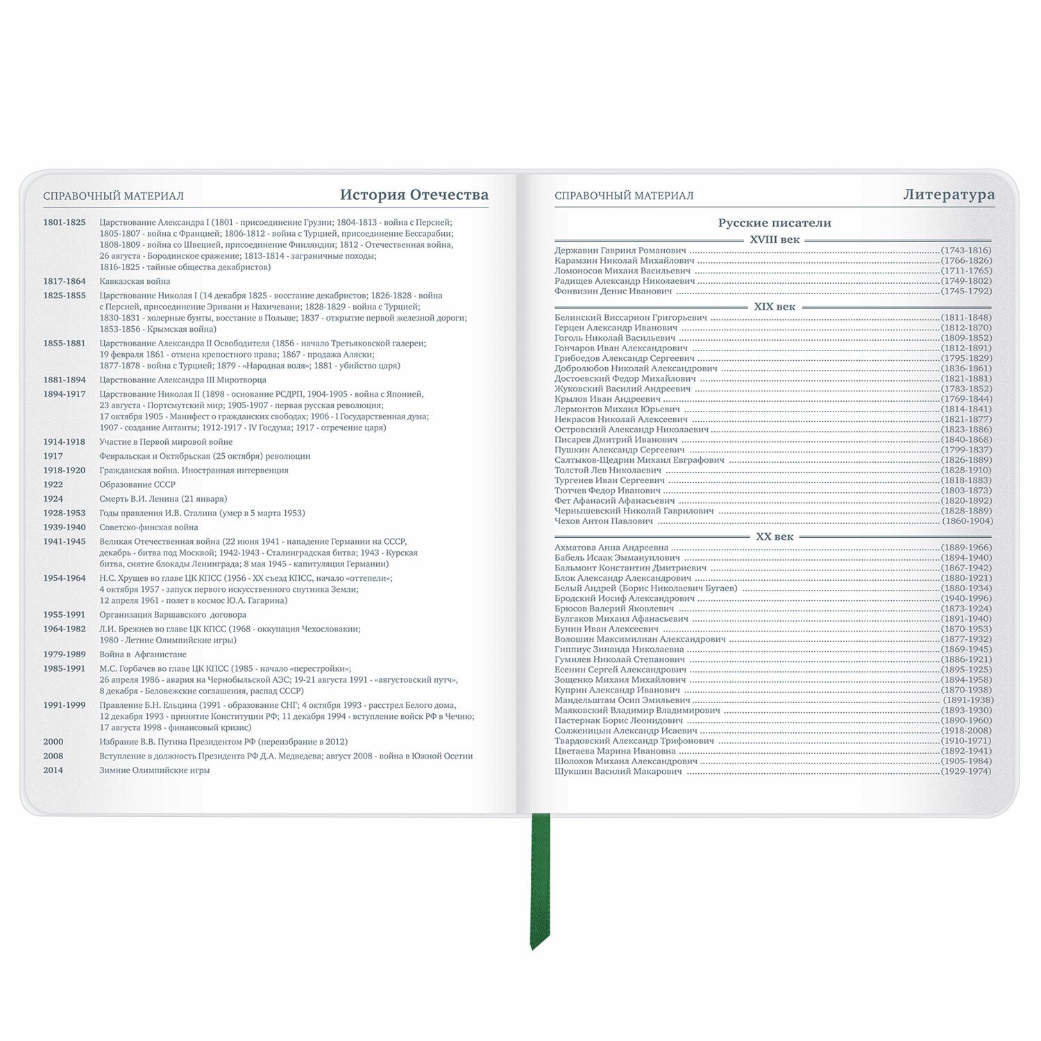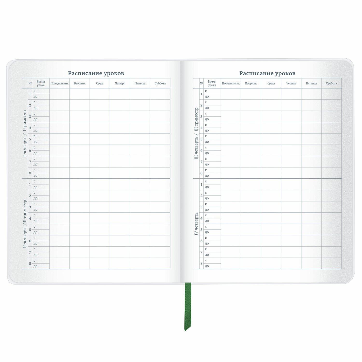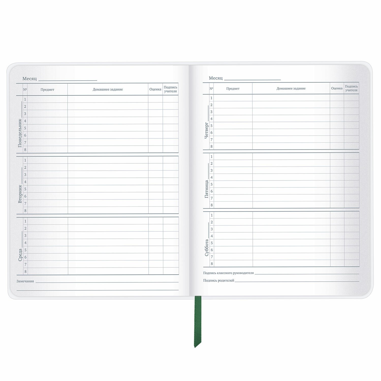 Предназначен для учащихся 1-11 классов. Интегральная обложка из экокожи надежно защищает бумагу и долго сохраняет привлекательный внешний вид, а тиснение фольгой придает изделию оригинальность. Внутренний блок содержит 48 листов и состоит из офсетной белой бумаги повышенной плотности 70 г/м2. В справочном материале собраны основные подсказки для учащихся. Для удобства пользования дневник снабжен закладкой-ляссе.