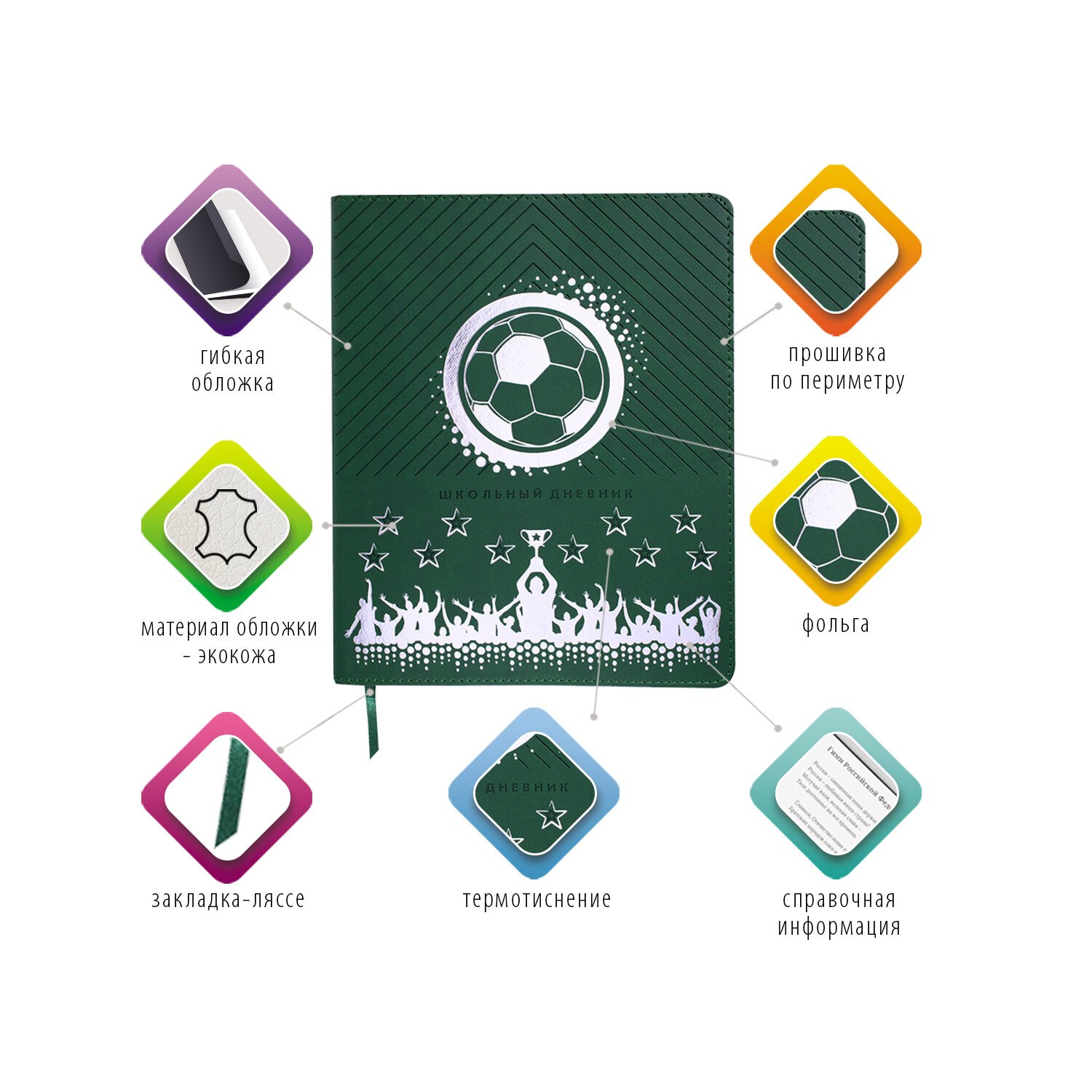 Дневник 1-11 класс 48 л., кожзам (гибкая), термотиснение, фольга, BRAUBERG, "Football", 106170