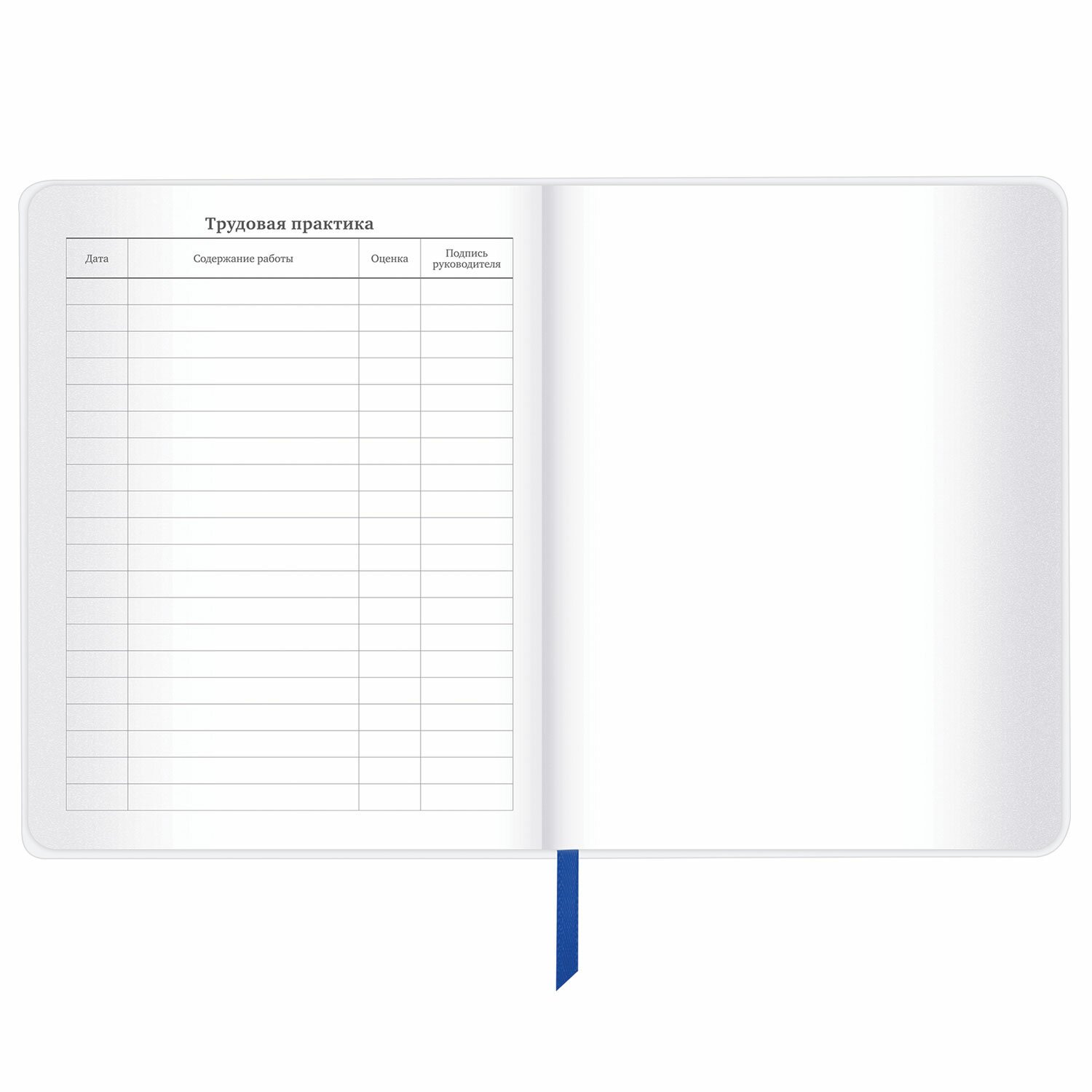 Внутренний блок содержит 48 листов и состоит из офсетной белой бумаги повышенной плотности 70 г/м2. Для удобства использования дневник снабжен закладкой-ляссе.