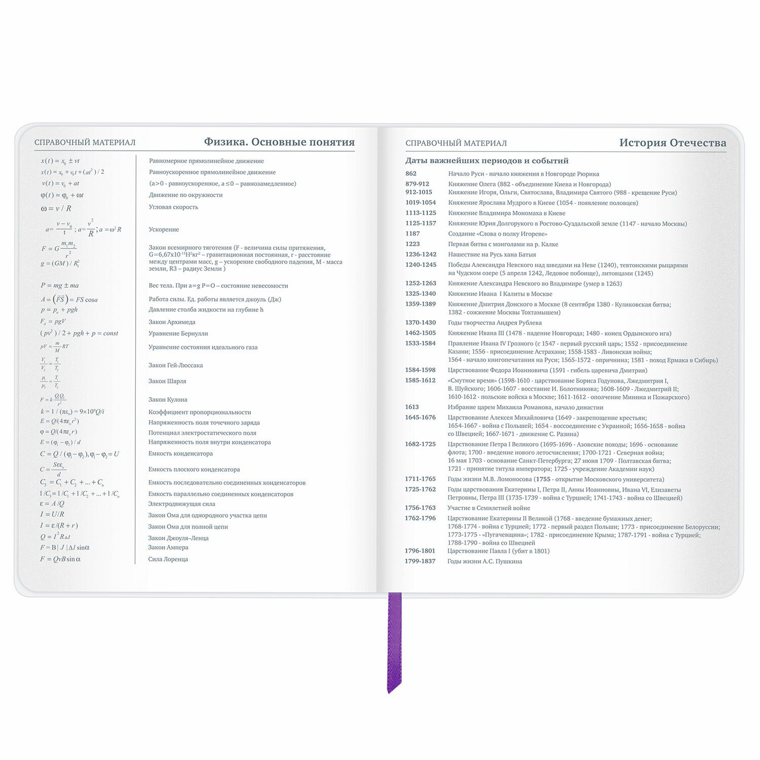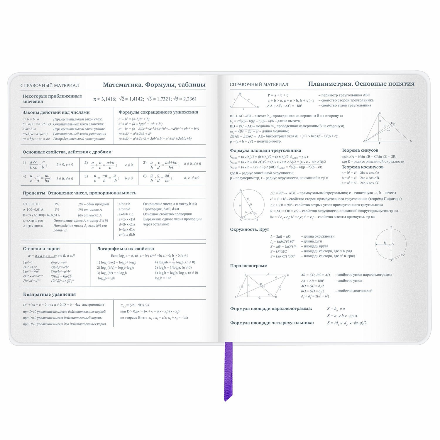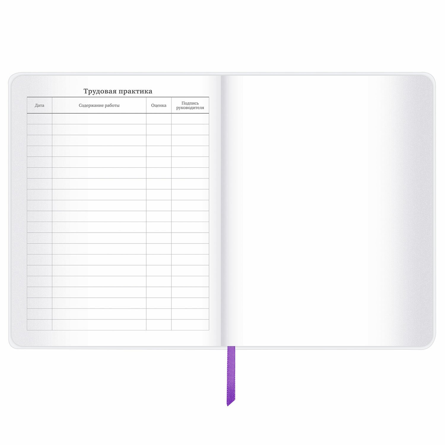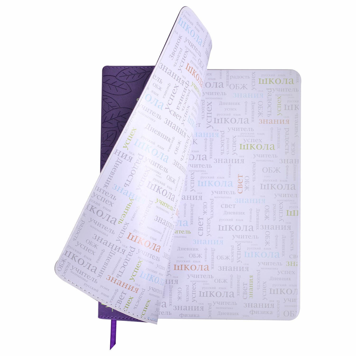 Предназначен для учащихся 1-11 классов. Интегральная обложка из экокожи надежно защищает бумагу и долго сохраняет привлекательный внешний вид, а тиснение фольгой придает изделию оригинальность. Внутренний блок содержит 48 листов и состоит из офсетной белой бумаги повышенной плотности 70 г/м2. В справочном материале собраны основные подсказки для учащихся. Для удобства пользования дневник снабжен закладкой-ляссе.