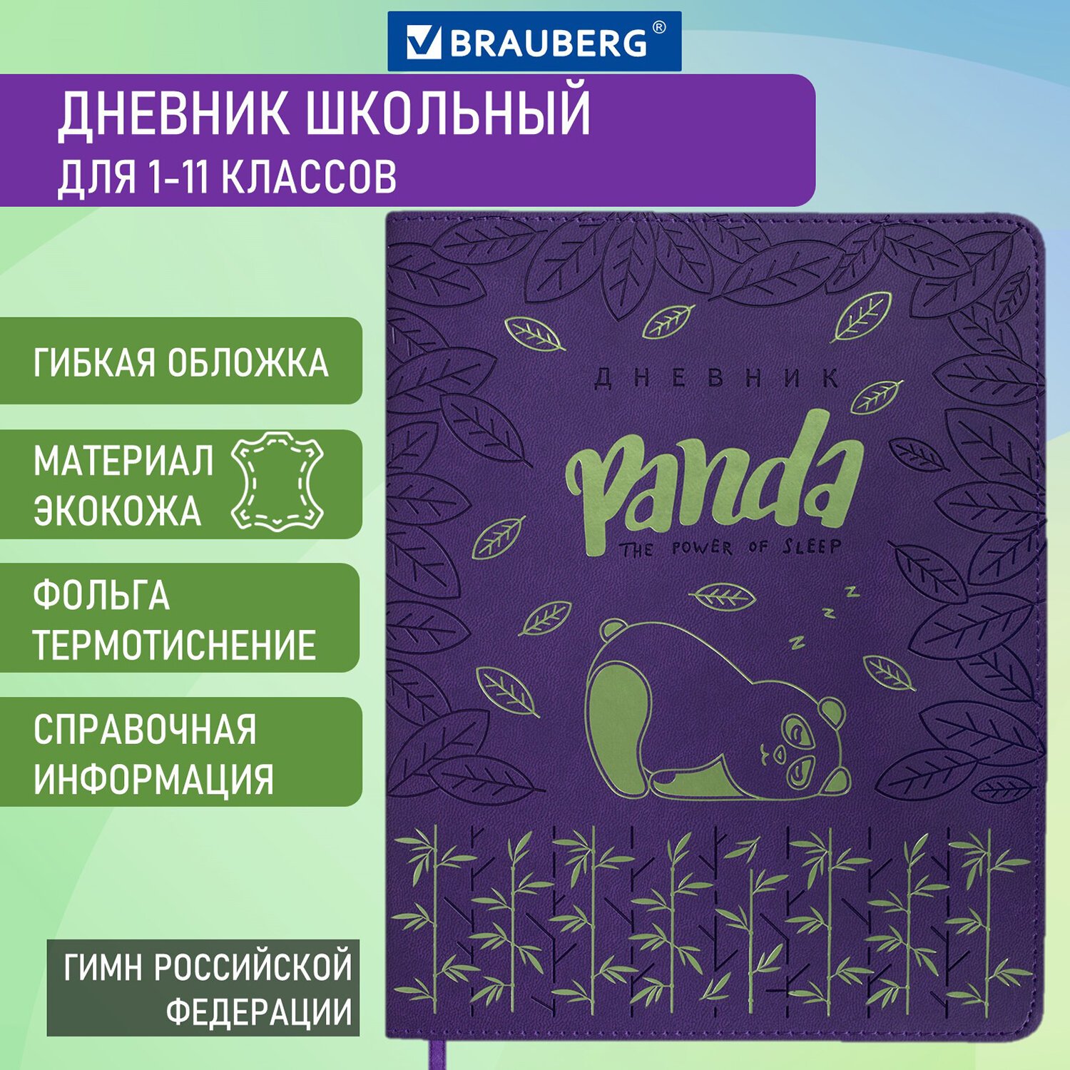 Дневник 1-11 класс 48 л., кожзам (гибкая), термотиснение, фольга, BRAUBERG, "Panda", 106171