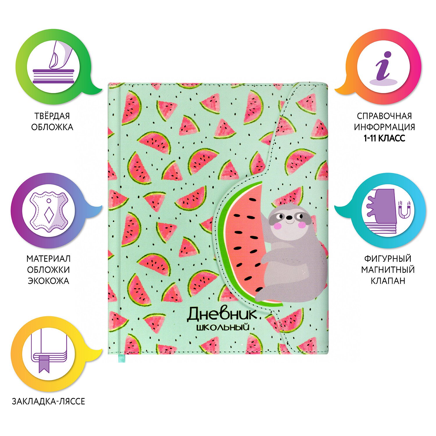 Дневник 1-11 класс 48 л., кожзам (твердая), магнитный клапан, ЮНЛАНДИЯ, "АРБУЗИКИ", 105952