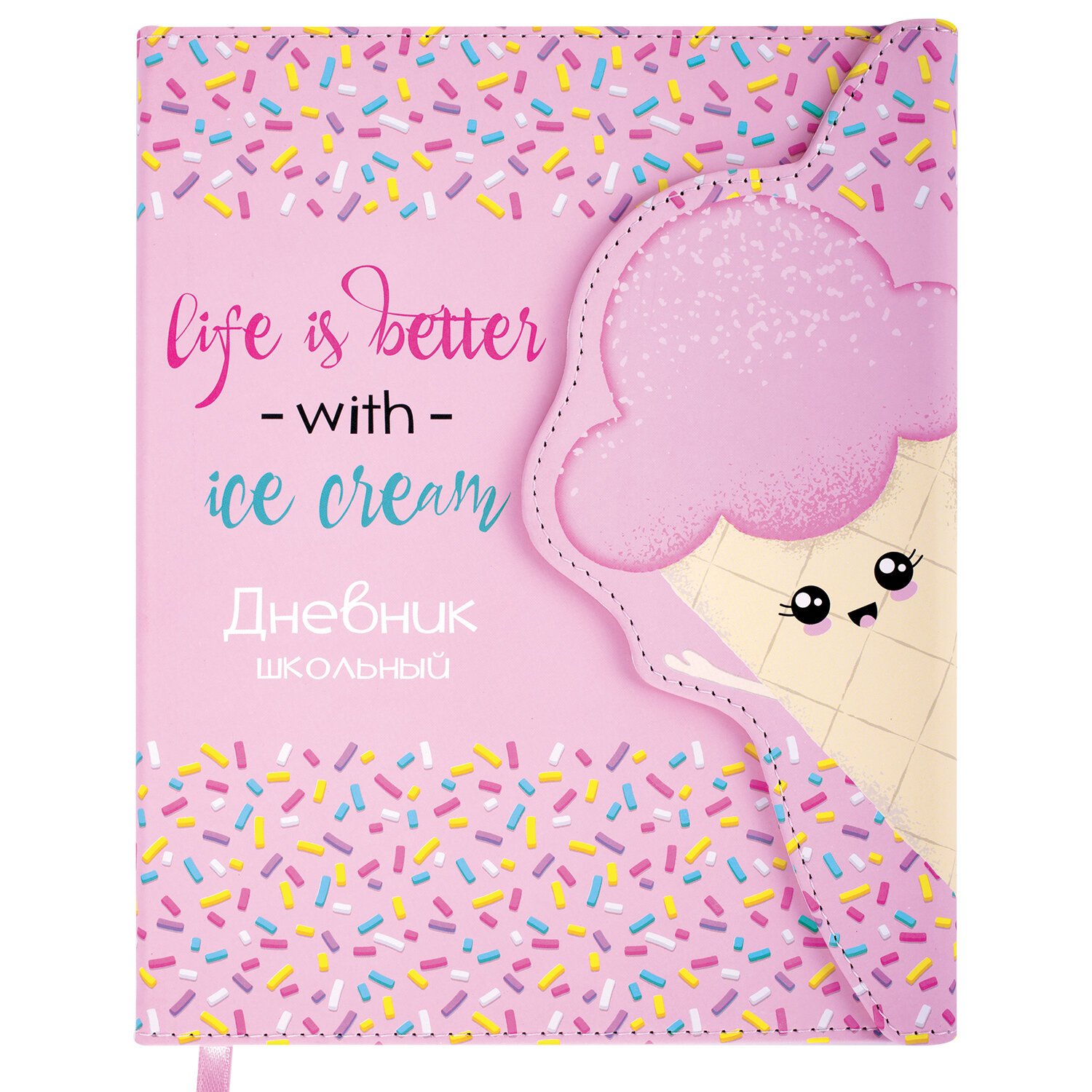 Дневник 1-11 класс 48 л., кожзам (твердая), магнитный клапан, ЮНЛАНДИЯ, "Мороженка", 106184